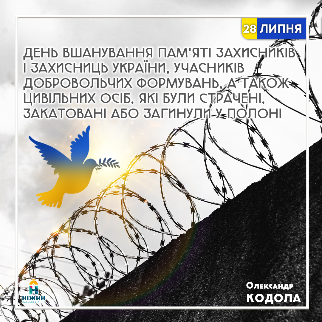 🕯 28 липня Україна вшановує пам’ять Захисників і Захисниць України, учасників добровольчих формувань, а також цивільних осіб, які були страчені, закатовані або загинули в полоні. Верховна Рада встановила цю дату на підтримку громадських ініціатив, нагадуючи про трагічні наслідки повномасштабної російської агресії.