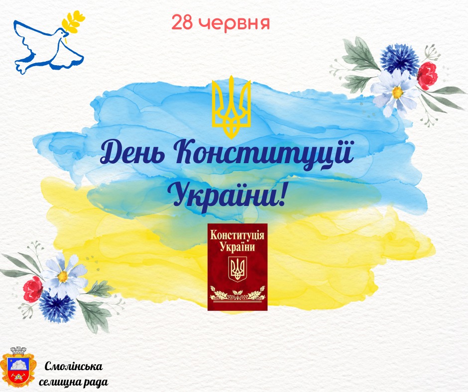 28 червня Україна урочисто відзначає День Конституції України – ключове державне свято, що символізує засади нашої національної самоідентичності та непохитність демократичних ідеалів. Цей день нагадує нам про важливість ухвалення Основного Закону в 1996 році, який став фундаментом для розбудови правової, соціальної та суверенної української держави. День Конституції України – це не лише історична подія, а й постійне нагадування про цінності, на яких стоїть наша країна.Для кожного громадянина, зокрема для жителів Смолінської громади, святкування Дня Конституції України є нагодою для глибокого осмислення прав і свобод людини, що їх гарантує Конституція. У цей непростий час, коли Україна продовжує відстоювати свою незалежність та територіальну цілісність, значення Основного Закону набуває особливого сенсу. Він виступає як моральний орієнтир і правове підґрунтя, що об’єднує націю навколо спільної мети – створення міцної та успішної країни.Цього святкового дня ми знову підтверджуємо свою відданість принципам, закладеним у нашій Конституції: верховенству права, повазі до людської гідності, демократичному устрою та національній єдності. Саме ці фундаментальні засади є наріжним каменем для побудови відповідального та справедливого суспільства. Конституція забезпечує рівність всіх перед законом, захист особистих свобод та гарантує громадянські права, що є невід’ємною складовою гідного життя. Вона є символом нашої незламності та прагнення до справедливості, адже саме завдяки їй українці мають чіткі орієнтири у своєму розвитку.Бажаємо всім жителям Смолінської громади міцного здоров’я, невичерпної енергії, а також миру та єдності. Нехай кожен день буде сповнений впевненістю у світлому майбутньому України, а її Основний Закон слугуватиме надійним дороговказом у всіх починаннях. Пам’ятаймо, що лише спільними зусиллями, дотримуючись духу і букви Конституції, ми зможемо збудувати вільну, квітучу та справедливу Україну, про яку всі мріємо. День Конституції України – це нагадування про нашу відданість демократичним цінностям та віру у перемогу. Нехай її Основний Закон завжди залишається надійним орієнтиром у повсякденних справах.