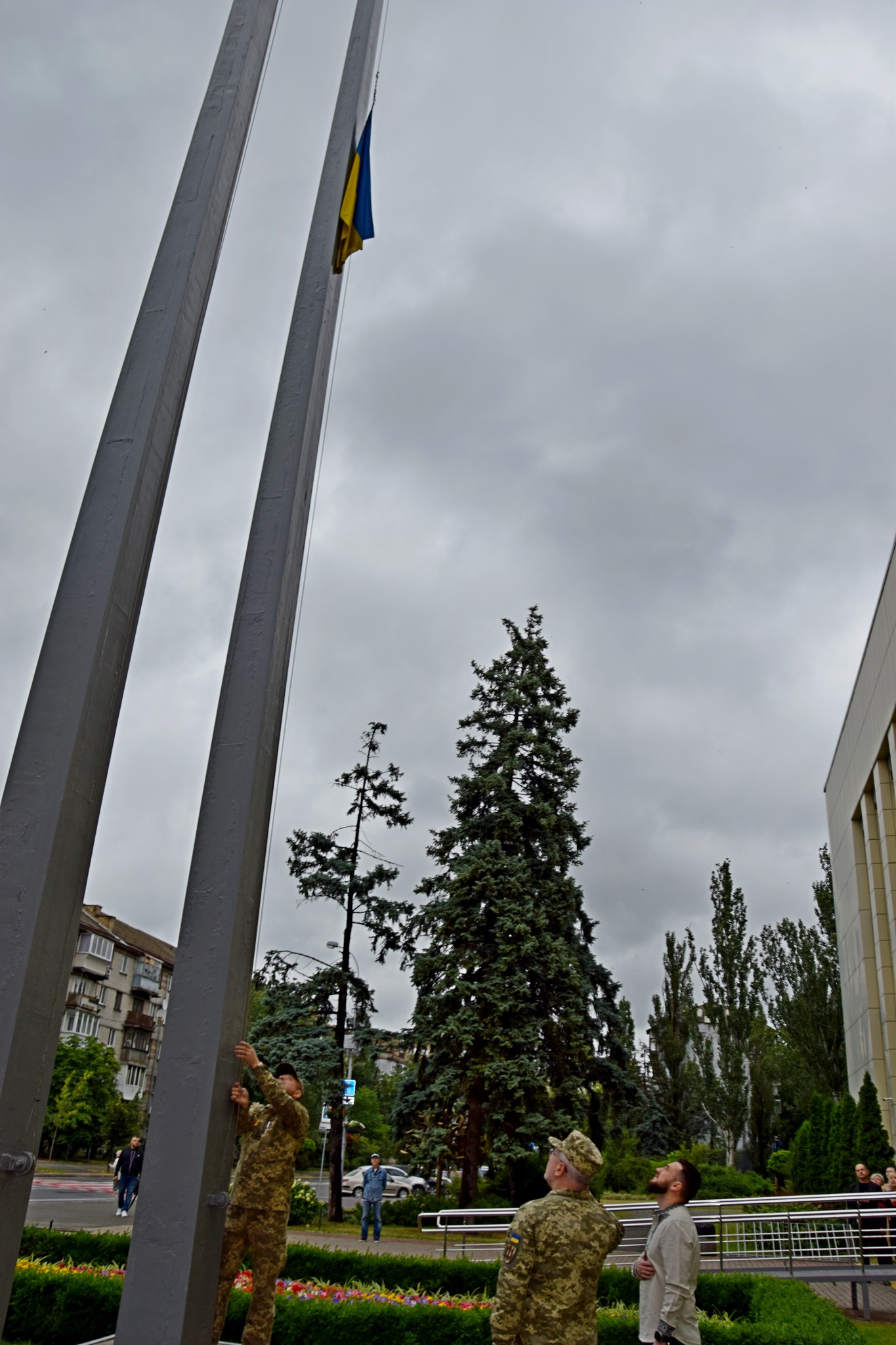 Сьогодні, з нагоди 29-ї річниці Основного Закону, біля будівлі РДА відбулася церемонія підняття Державного Прапора. Присутні хвилиною мовчання вшанували пам’ять про усіх, хто віддав життя, виконуючи конституційний обов’язок, захищаючи Батьківщину від ворога.