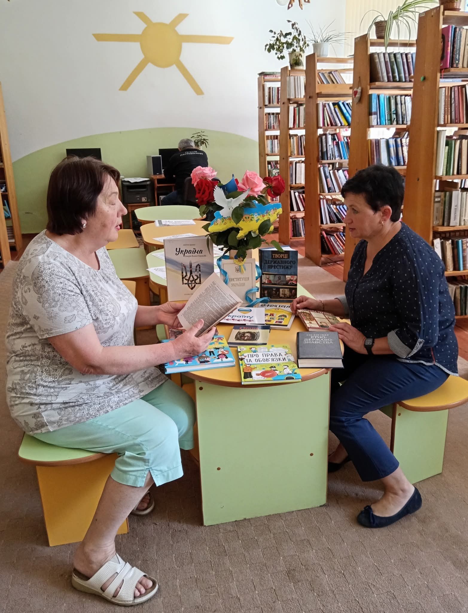 У відділі обслуговування центральної бібліотеки відбувся діалог-обговорення «Конституція – основа з всіх основ», до якого активно долучилися внутрішньо переміщені особи. Учасники мали змогу дізнатися про історичні закони, що передували Конституції України, та обговорити її надзвичайну важливість у сучасному житті.