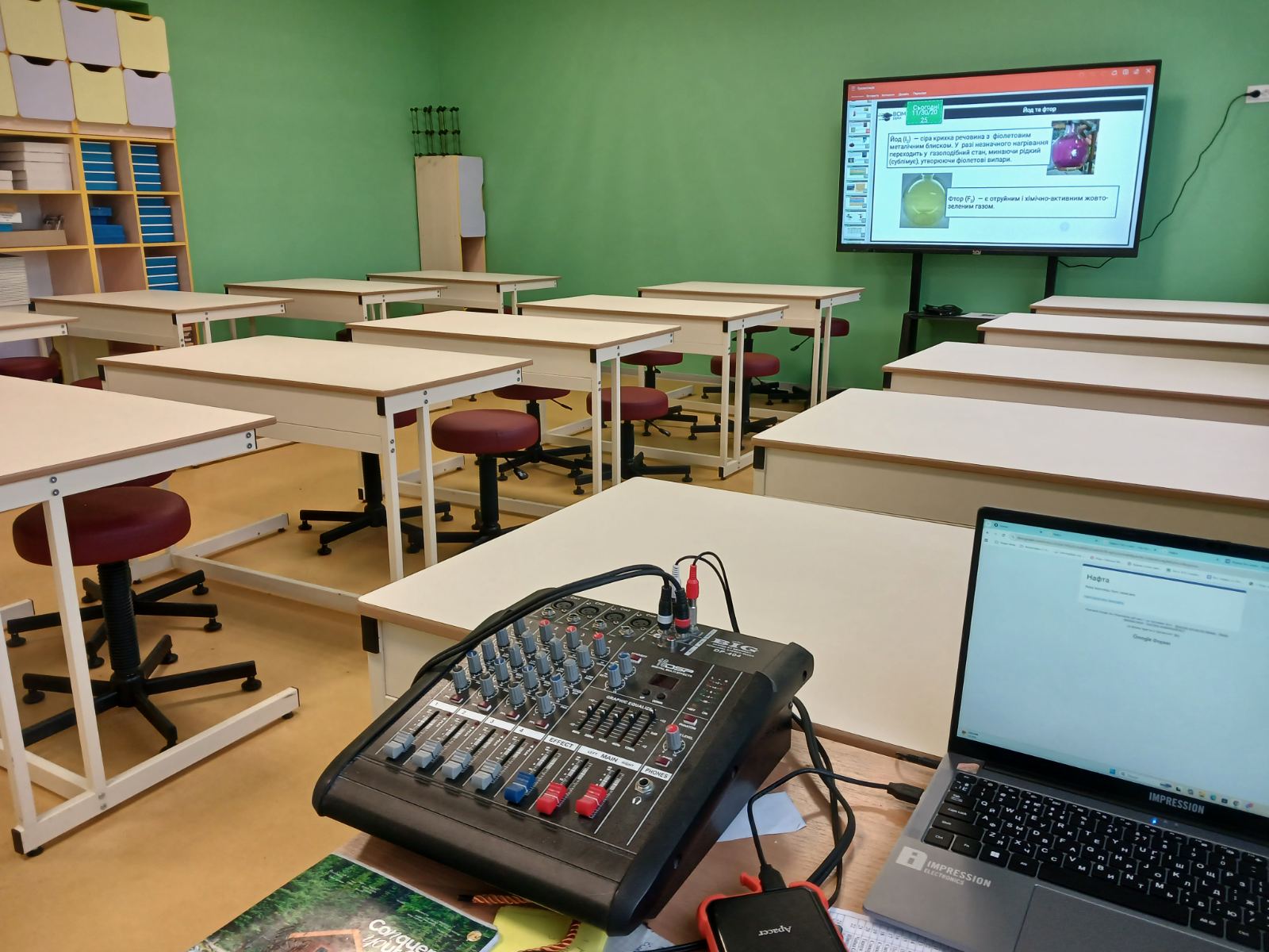 Оновлений кабінет хімії оснащений сучасним лабораторним обладнанням, навчальними матеріалами та необхідними засобами безпеки. Це створює належні умови для проведення лабораторних і практичних робіт, демонстраційних експериментів, дослідницької діяльності учнів, а також для підготовки до національного мультипредметного тесту, предметних олімпіад і наукових конкурсів.