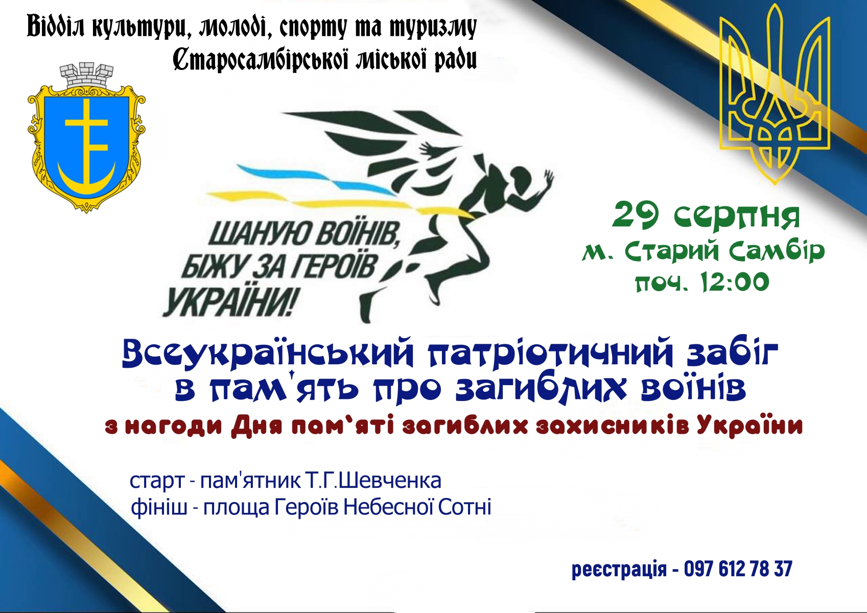 29 серпня – це особливий день для кожного українця, адже саме в цей день ми вшановуємо пам’ять загиблих Захисників України. У місті Старий Самбір відбудеться знаковий патріотичний захід – забіг «Біжу. Шаную воїнів. Біжу за Героїв України».