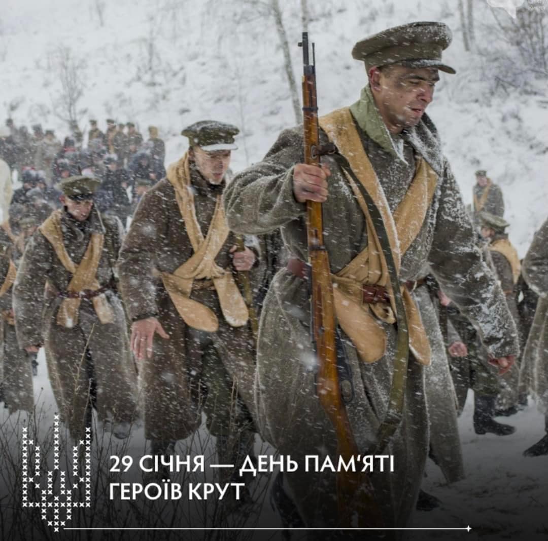 29 січня ми згадуємо Героїв Крут. У 1918 році майже 300 студентів та юнаків стали на захист України біля залізничної станції Крути проти багатотисячної більшовицької армії. Вони стримали ворога на кілька днів, і цей час дозволив УНР підписати Берестейський мирний договір.