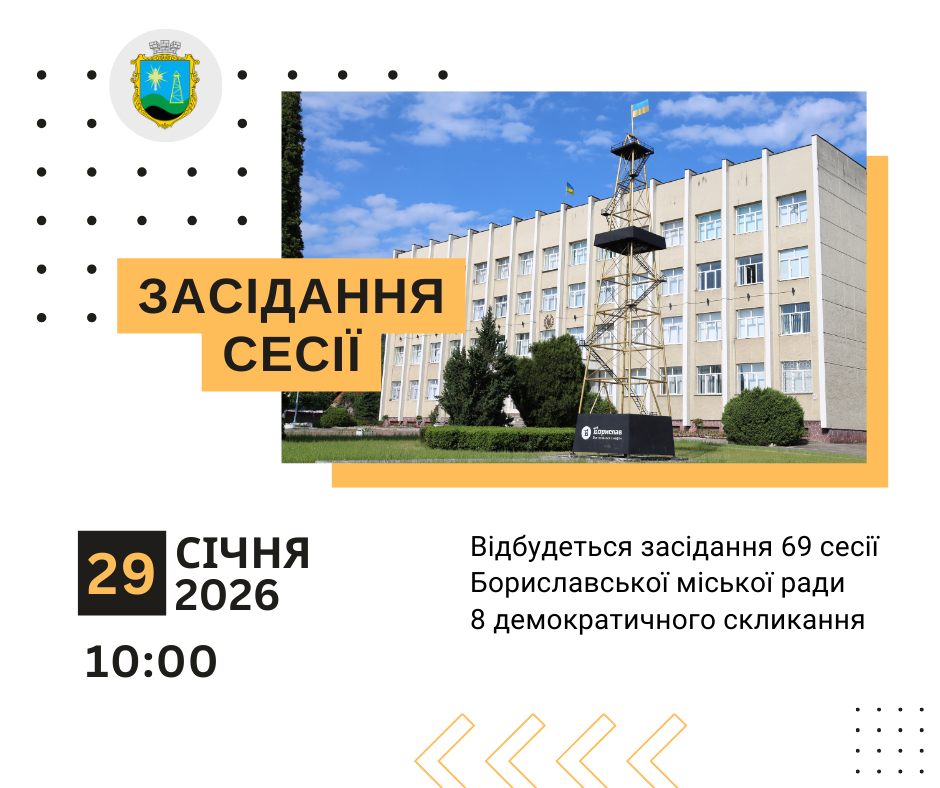 29 січня 2026 року о 10.00 год. відбудеться засідання 69 сесії Бориславської міської ради 8 демократичного скликання.