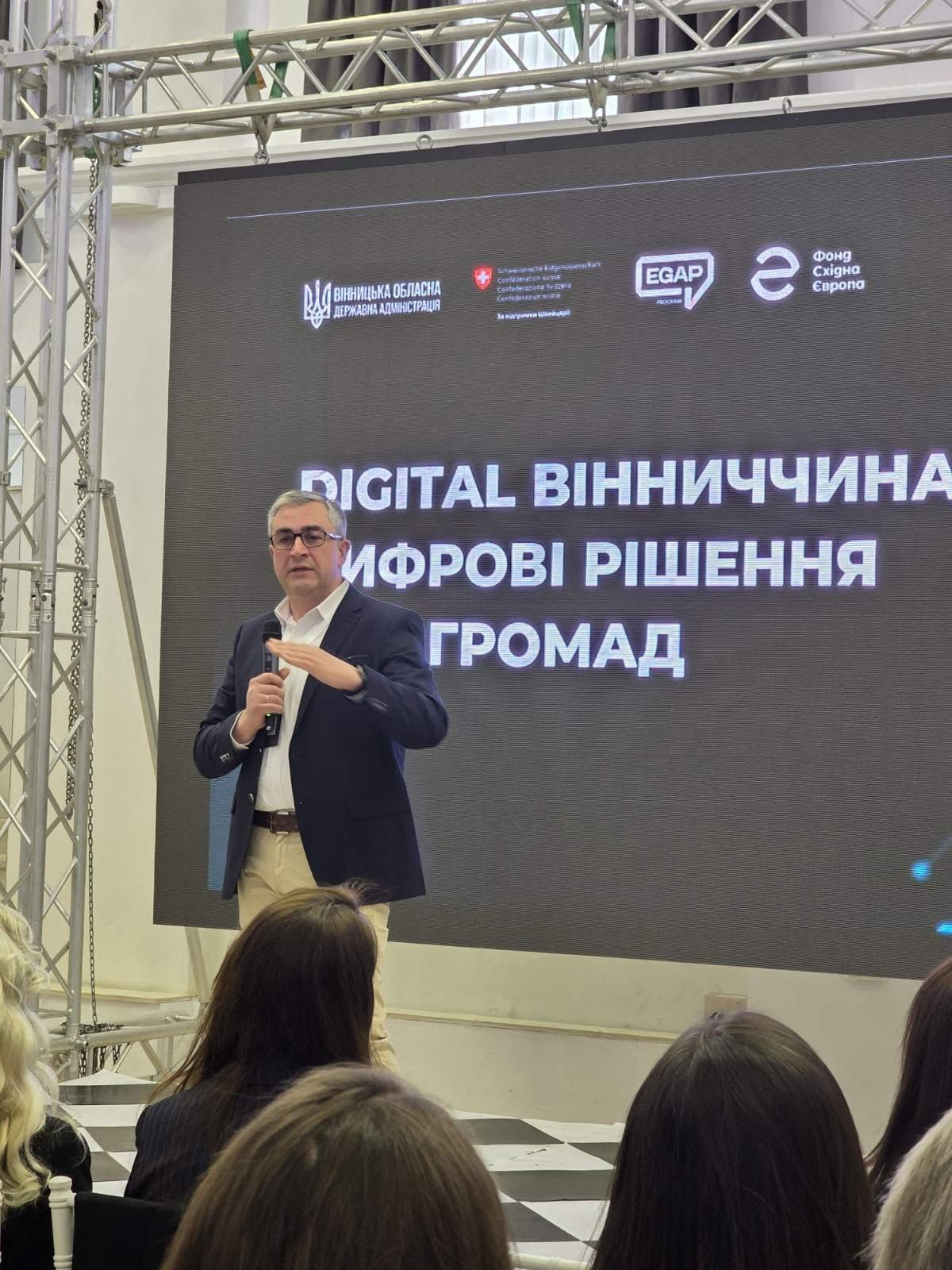 Форум «Digital Вінниччина: цифрові рішення для громад», що відбувся 29-30 квітня, став платформою для обговорення ключових аспектів цифрової трансформації. Серед них: впровадження електронних сервісів, автоматизація управлінських процесів, розвиток цифрової інфраструктури та підвищення рівня цифрової грамотності серед мешканців громад. Учасники заходу мали можливість ознайомитися з точками зростання, формуванням інституції CDTO в громадах, впровадженням кращих практик та конкретними кроками реалізації цифрової трансформації на місцях.