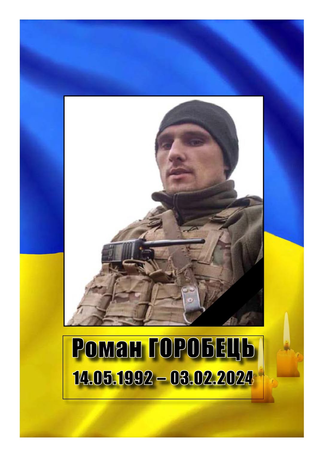 💔3-го лютого минає два гіркі роки з дня загибелі нашого героїчного земляка РОМАНА ОЛЕГОВИЧА ГОРОБЦЯ з Подолянець.