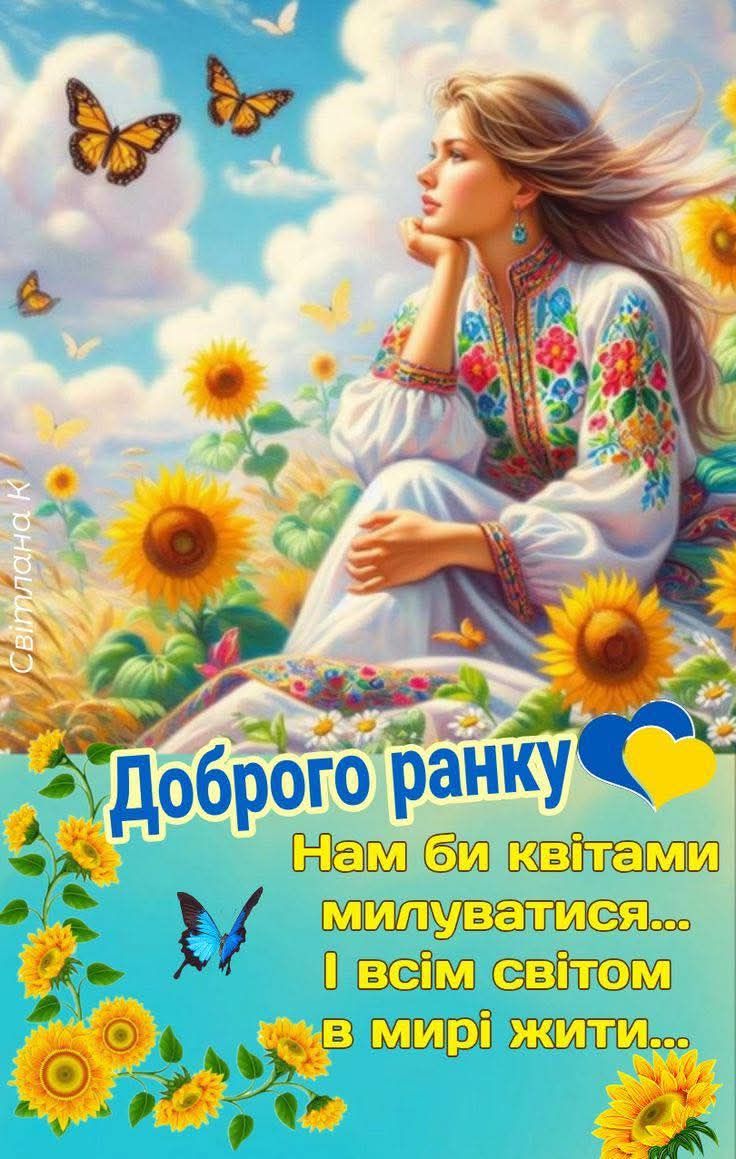 Доброго ранку, українці! Нехай цей день буде наповнений миром, натхненням та силою. Бажаємо світла у серці, тепла в душі й непохитної віри в краще. Слава Україні! 🌸