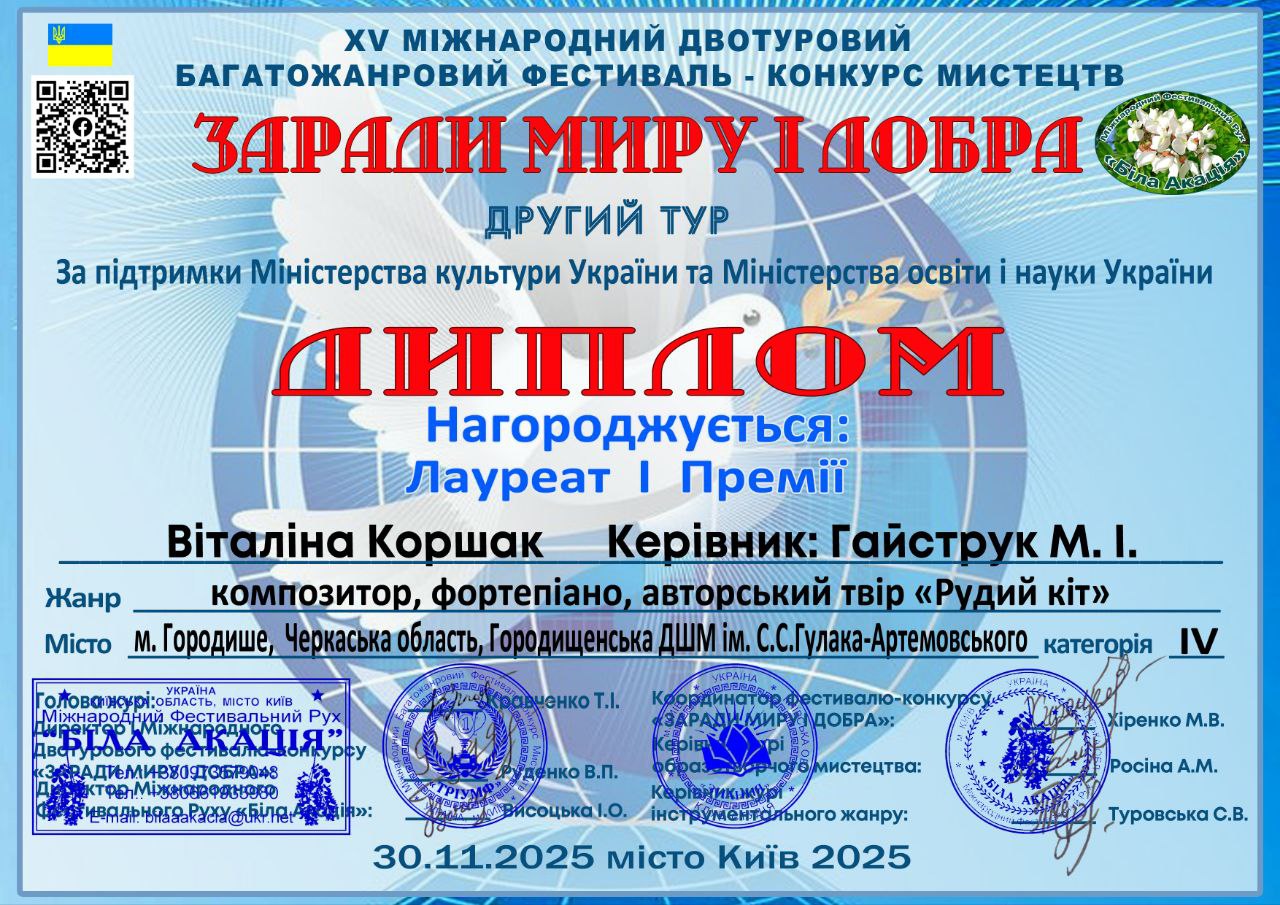 30 листопада 2025 року в місті Києві відбувся 2 тур 15-го Міжнародного двотурового фестивалю-конкурсу мистецтв