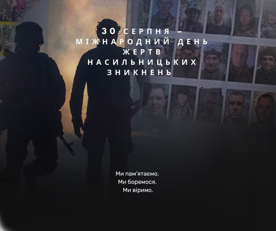 30 серпня – Міжнародний день жертв насильницьких зникнень. Ця дата покликана нагадати про тих, хто безслідно зник, про горе їхніх родин, які роками чекають на звістку. В Україні цей день набуває винятково трагічного забарвлення. Наша земля пережила жахи війни, яка принесла не лише біль втрат, а й гірку невідомість. Ми знаємо, як це, коли наші рідні, наші захисники та захисниці, наші земляки зникають безвісти. Це страшне випробування для сімей – жити в постійному очікуванні, балансуючи між надією та відчаєм.