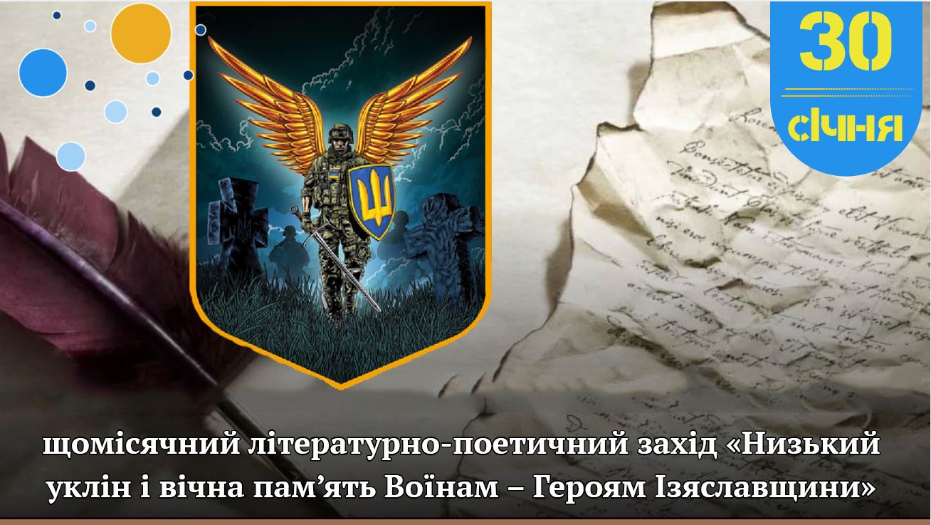 🕯️ 30 січня в Ізяславі відбудеться щомісячний літературно-поетичний захід «Низький уклін і вічна пам’ять Воїнам – Героям Ізяславщини» 🇺🇦, присвячений світлій пам’яті Захисників, які у різні роки січня відійшли у Вічність 🕊️.
