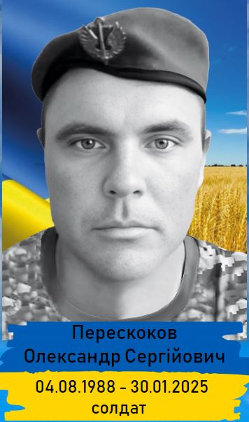 Сьогодні, 30 січня 2026 року минає рік від того страшного дня, коли зупинилося серце нашого земляка Перескокова Олександра Сергійовича, який поклав життя, захищаючи свою Батьківщину.
