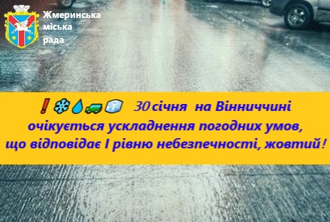 ❗️ ❄️💧🚙🧊 30 січня на території Вінницької області очікується ускладнення погодних умов, що відповідає I рівню небезпечності, жовтий 🟡!