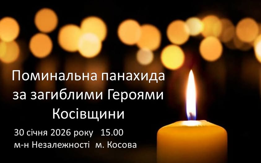 30 січня 2026 року на майдані Незалежності м. Косова відбудеться поминальна панахида за загиблими воїнами Косівщини, які у боротьбі з окупантами поклали своє життя за волю та незалежність України.