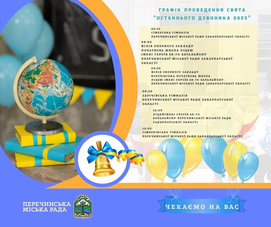 Учні та вчителі Перечинської громади готуються до святкування Останнього дзвоника. Ось розклад урочистих лінійок у різних навчальних закладах: