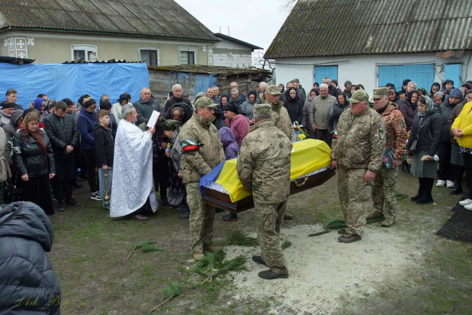 Церемонія прощання розпочалася з панахиди у церкві Покрови Пресвятої Богородиці. Місцеві священники провели поминальну службу, а численні односельці принесли квіти та висловили глибокі співчуття родині загиблого Героя. Люди прийшли вшанувати пам’ять воїна, підтримати його рідних у цей надзвичайно важкий час. Звучали слова подяки та скорботи за полеглим захисником України.