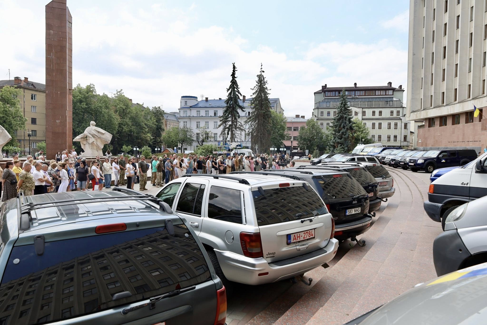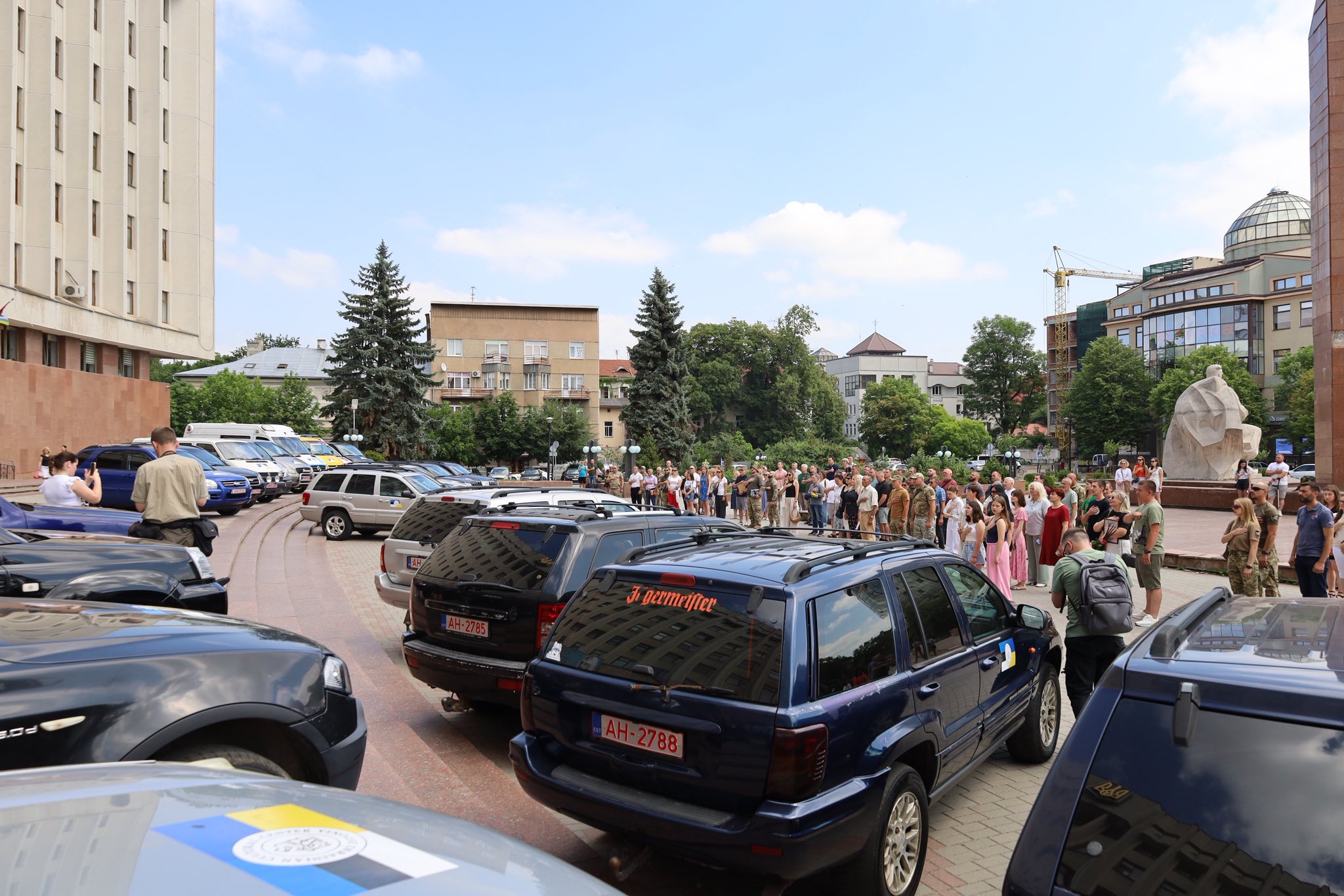 Сьогодні біля Івано-Франківської міської ради передали 34 автомобілі для наших захисників. Це — результат великої спільної справи, до якої долучилися партнери з Естонії, волонтери, працівники міської ради.