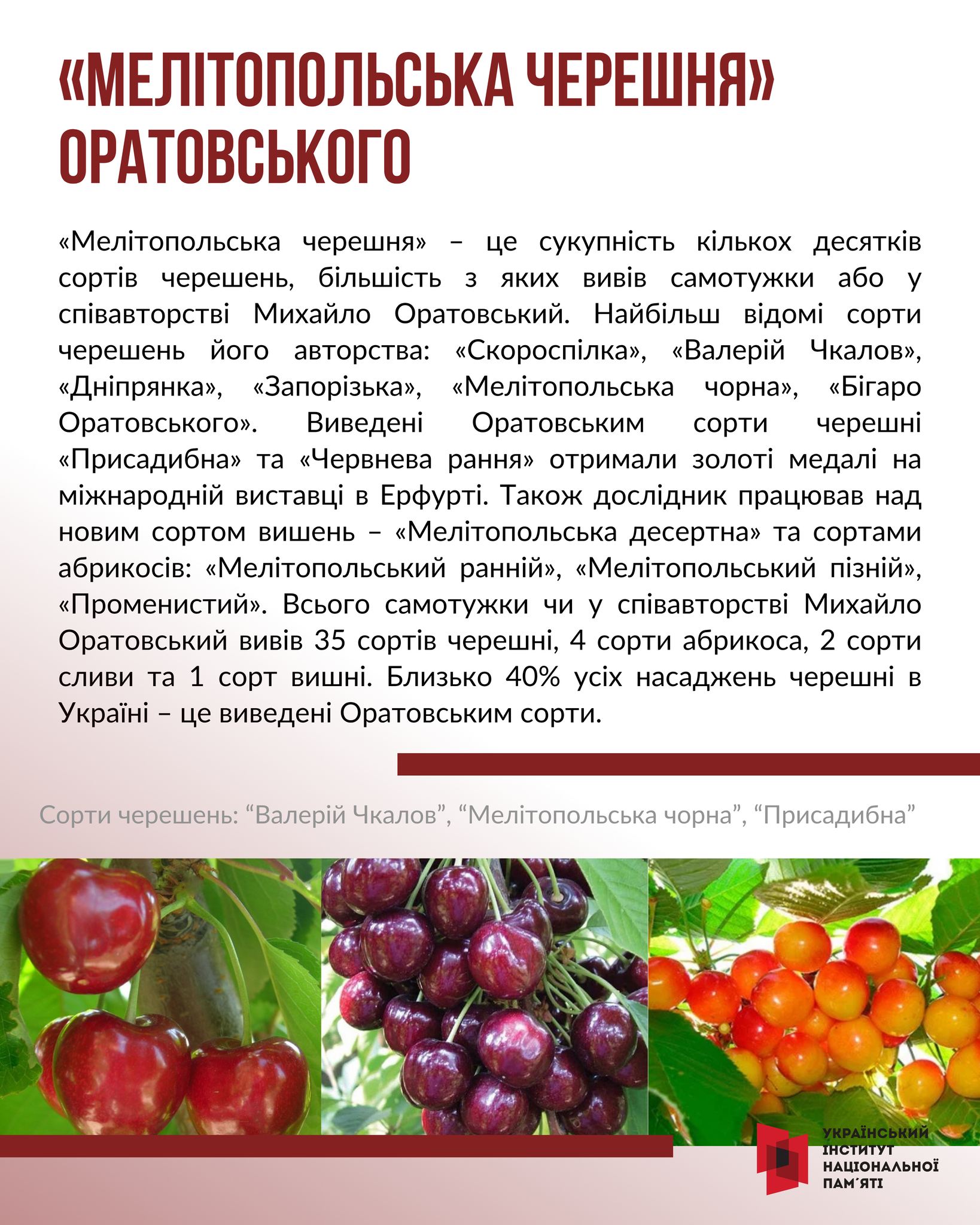 4 липня відзначаємо 120 річницю українського науковця та селекціонера Михайла Оратовського. Виведені ним сорти черешні стали однією з візитних карток української культири – славнозвісною «мелітопольською черешнею».