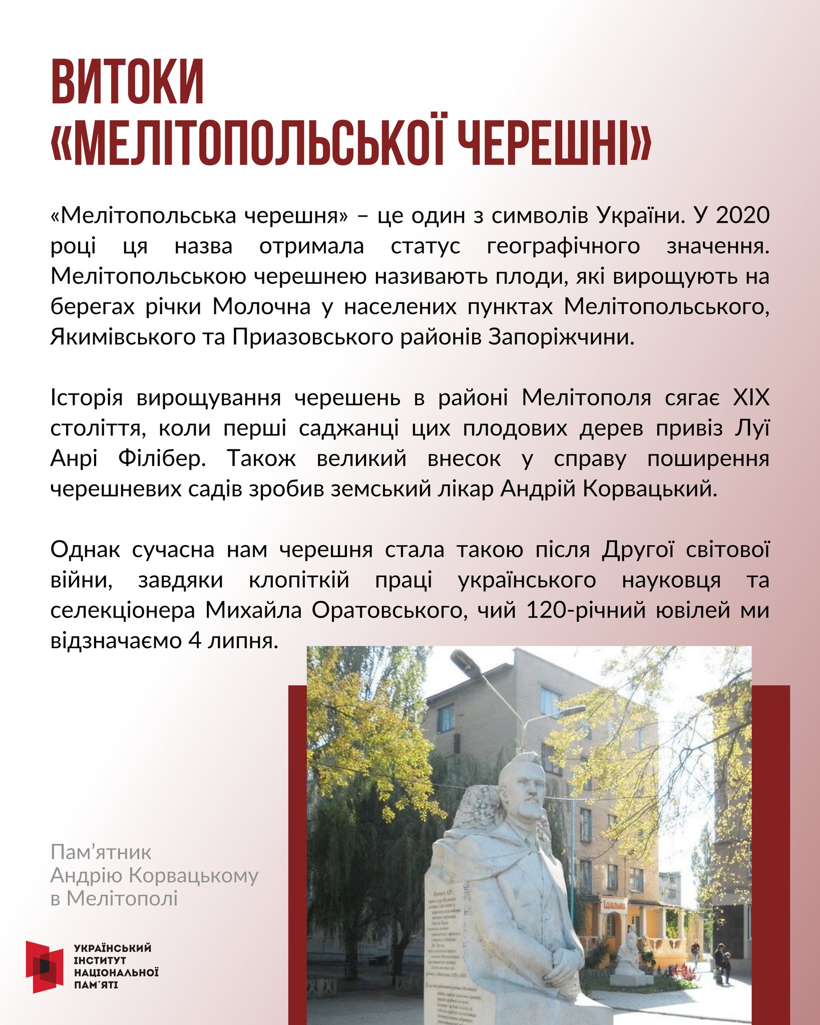 Сьогодні «мелітопольська черешня» та пам’ять про Михайла Оратовського – це сумне нагадування про те, як російська окупація намагається знищити українську культуру.