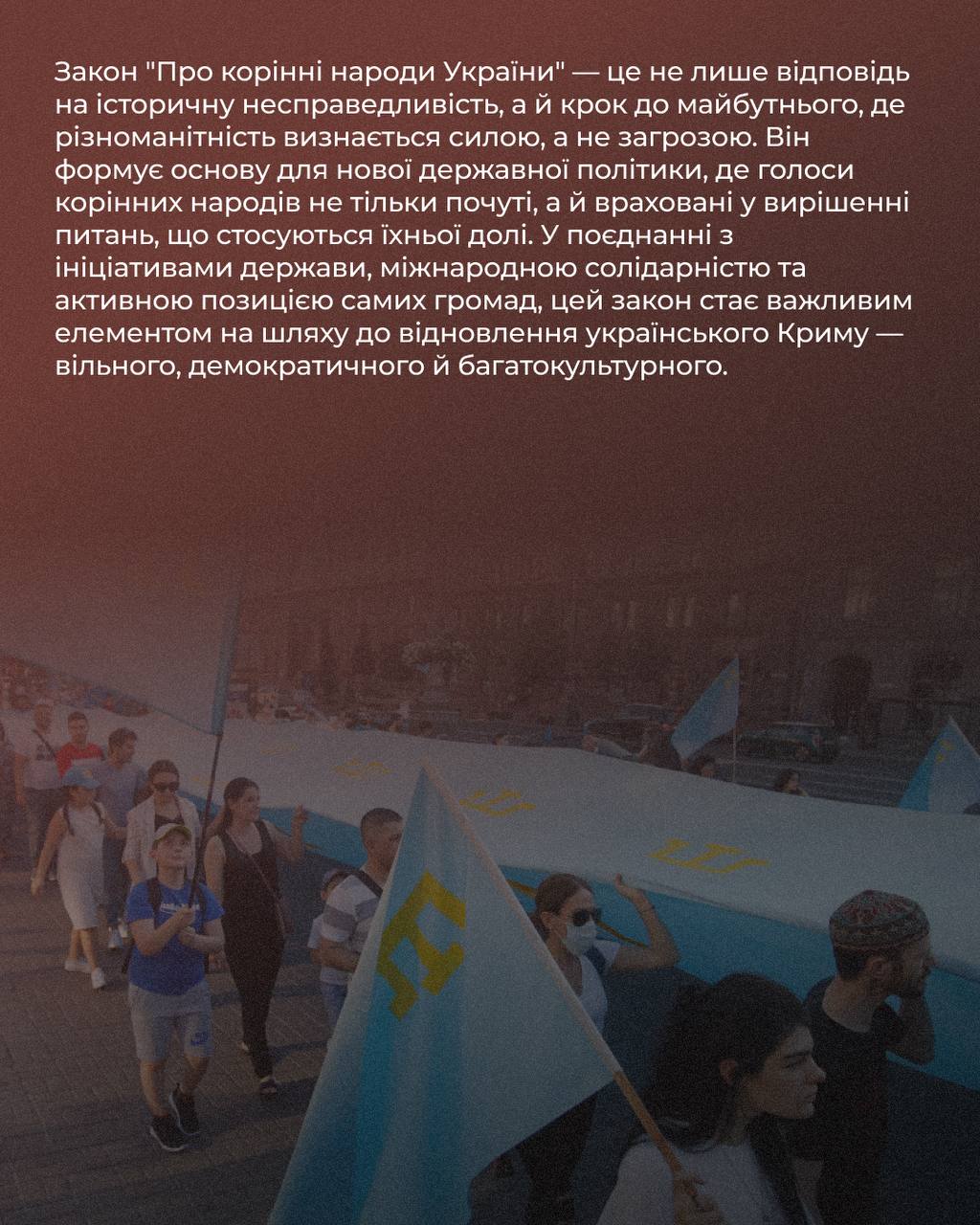 Після 2014 року кримські татари стали символом спротиву окупації. Попри тиск і репресії, вони залишилися вірними Україні. Закон 2021 року — відповідь на цю боротьбу, а також на міжнародні стандарти захисту прав корінних народів.