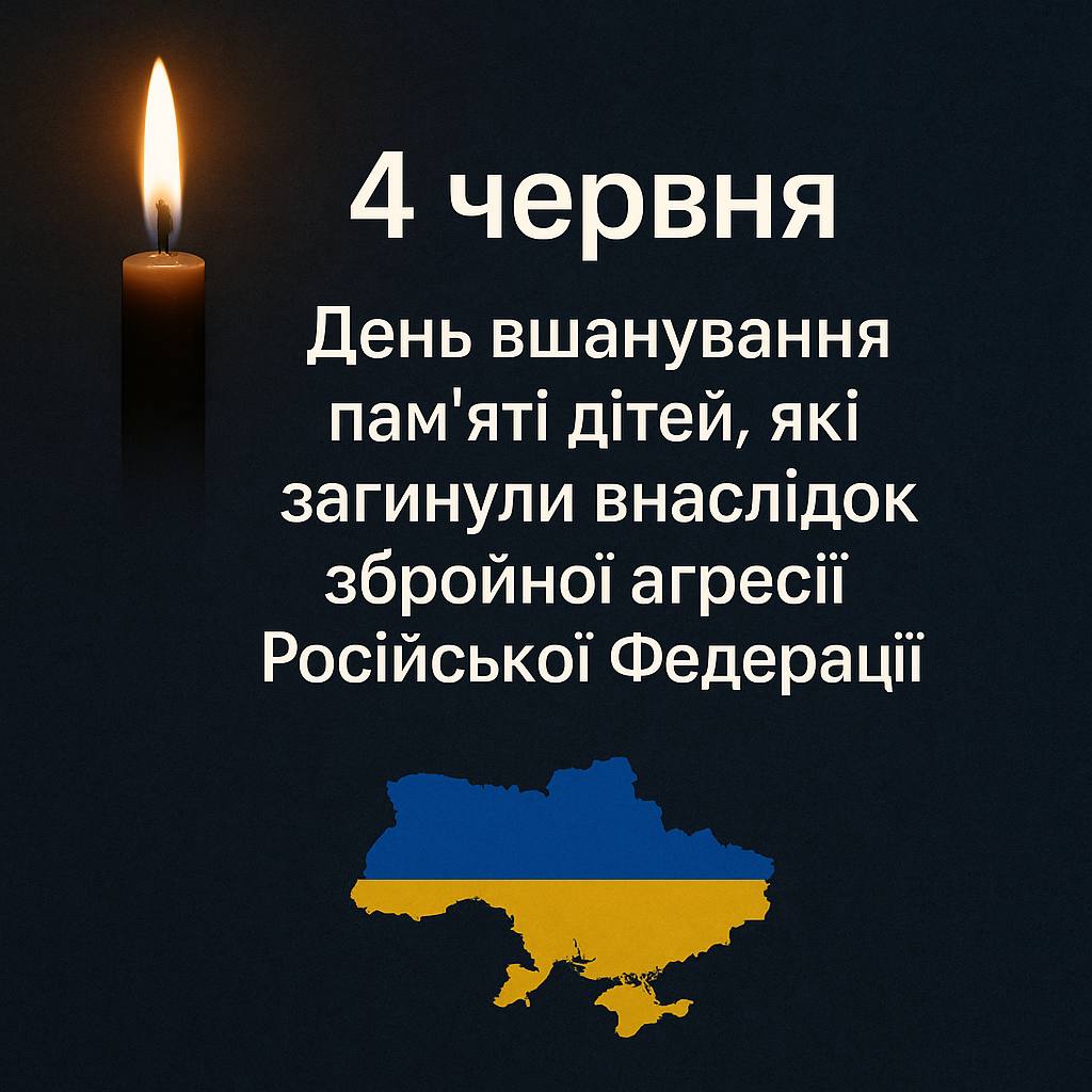 Сьогодні, 4 червня, Україна вшановує пам’ять дітей, які загинули внаслідок збройної агресії Російської Федерації. Це день скорботи, який нагадує нам про жахливу ціну, яку платить наша країна у війні, особливо про втрату найдорожчого – життя дітей. Ця трагічна дата змушує нас замислитись над тим, як війна безжально забирає майбутнє у невинних.