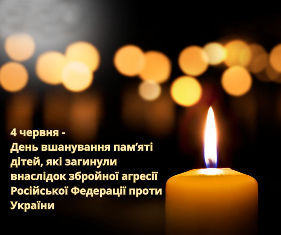 4 червня Україна вшановує пам’ять дітей, які загинули внаслідок збройної агресії російської федерації проти України. Цей день – нагадування про страшну ціну, яку платить наша країна за свободу та незалежність.