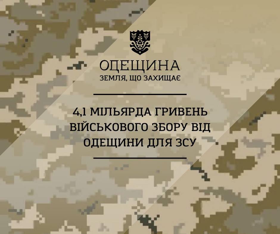 4,1 мільярда гривень військового збору від Одещини для ЗСУ З початку 2025 року…