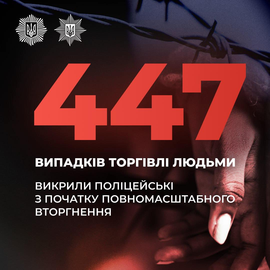Національна поліція України з початку повномасштабного вторгнення виявила 447 випадків торгівлі людьми, що свідчить про серйозність проблеми та активну роботу правоохоронців. За цей період підозри у скоєнні злочинів були пред’явлені 242 особам, які займалися трафікінгом. Це значна цифра, яка підкреслює масштаби діяльності злочинних угруповань.
