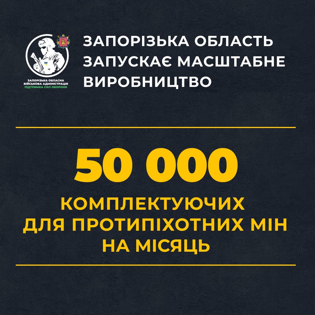 Запоріжжя: 50 000 мінних компонентів на місяць для оборони