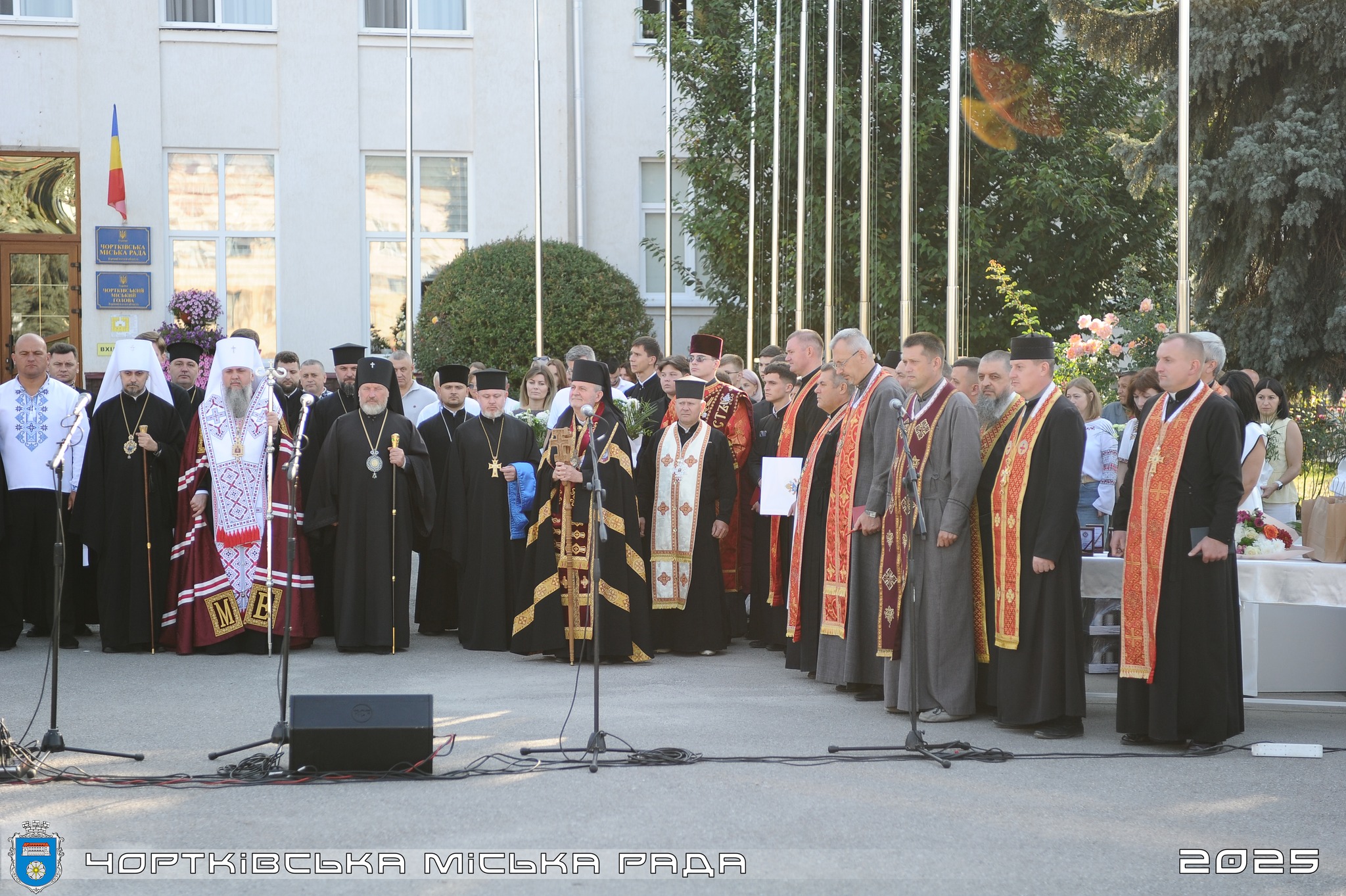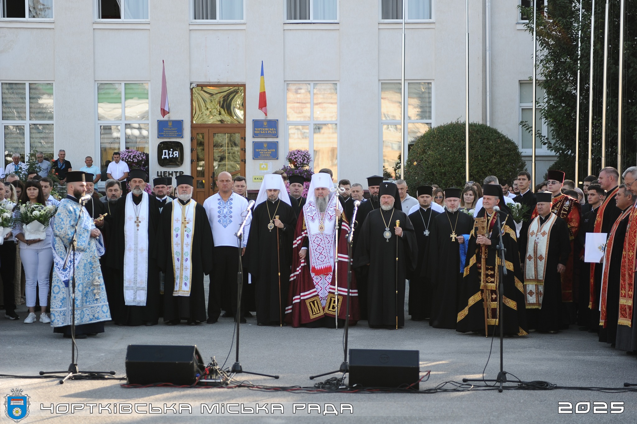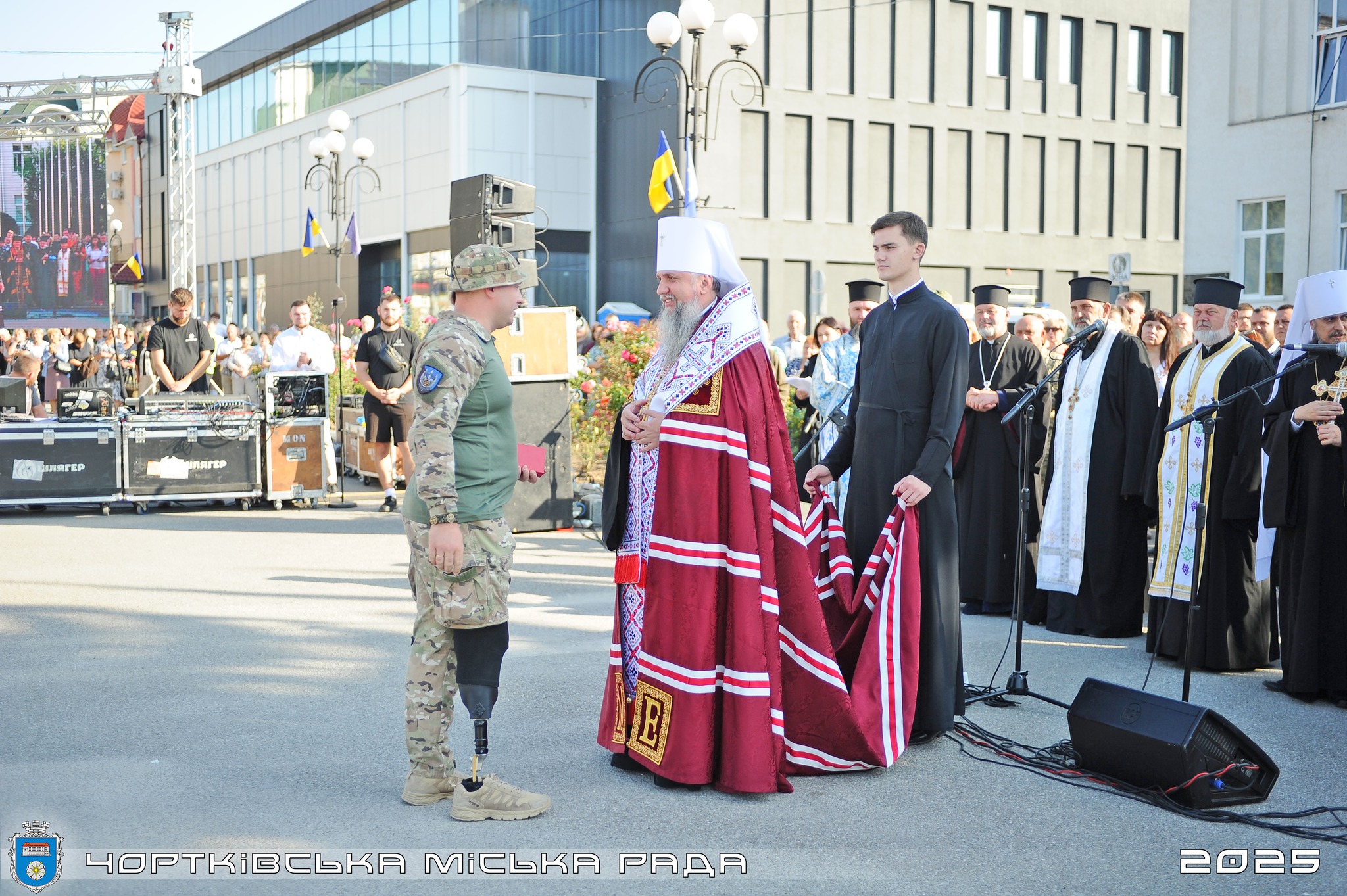 503-тя річниця Чорткова: спільна молитва, вшанування пам’яті та подяка героям. 4 вересня Чортків відзначив 503 роки від дня отримання міського статусу. Урочистості розпочалися з спільної молитви на площі Героїв Майдану за мир та єдність України. Богослужіння очолив Блаженнійший Митрополит Київський і всієї України Епіфаній, здійснивши свій Першосвятительський візит до міста з нагоди 120-річчя церкви Святої Покрови та 503-річчя Чорткова. До духовної події долучилися митрополит Тернопільський і Кременецький Нестор, єпископ Тернопільський і Теребовлянський Павло, єпископ Бучацький УГКЦ Димитрій та священнослужителі інших конфесій. Спільна молитва була присвячена миру в Україні, упокою душ загиблих Героїв, здоров’ю воїнів та підтримці українців на тимчасово окупованих територіях. “Сьогодні ми згадуємо тих, завдяки кому маємо можливість разом дякувати Богові за всі благодіяння. Бажаю кожному містянину сил, здоров’я та робити все на своєму місці для наближення перемоги”, – наголосив Блаженнійший Епіфаній. Високі відзнаки Православної Церкви України, зокрема медалі «Хрест свободи» «За жертовне служіння задля збереження божого дару свободи та незалежності», були вручені ветеранам російсько-української війни з Чортківської громади: 🏅 Михайлу Володимировичу МАРФІЮ; 🏅 Олегу Богдановичу ПОСТОЛОВСЬКОМУ; 🏅 Івану Степановичу РАТУШНЯКУ; 🏅 Сергію Руслановичу ІВАХІВУ; 🏅 Олегу Степановичу ДУБОВОМУ. Міський голова Володимир Шматько вручив посмертні нагрудні знаки «Почесний громадянин міста Чорткова» родинам загиблих Героїв. Звання присвоєно за рішенням сесії міської ради: 🎖 Борису Володимировичу ВАСИЛЕВИЧУ; 🎖 Сергію Олександровичу ЛАПЦІ; 🎖 Павлу Богдановичу САВЦІ; 🎖 Андрію Володимировичу БОРУХУ; 🎖 Руслану Миколайовичу КОСТЮКУ; 🎖 Андрію Павловичу ПІДСАДНОМУ; 🎖 Ігорю Богдановичу ДАНИЛИШИНУ; 🎖 Миколі Івановичу ЦЮПАКУ; 🎖 Ігорю Богдановичу ОСТРОВСЬКОМУ; 🎖 Петру Івановичу КАСЬКІВУ. 📃 Командир військової частини А1915 Микола Сандул отримав Апостольське Благословення від Папи Римського Лева XIV, передане отцем Володимиром Заболотним. 🎖 Міський голова Чорткова Володимир Шматько був нагороджений Блаженнійшим Епіфанієм «Орденом Святого Миколая Чудотворця». Українські та іноземні делегації, зокрема з Латвії та Молдови, які відвідали Чортків з нагоди 503-ї річниці, поклали квіти до інсталяції, присвяченої загиблим Героям громади.