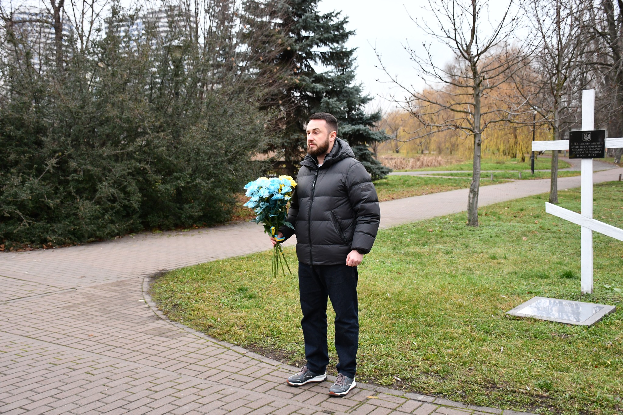 Учасники церемонії схилили голови у хвилині мовчання, віддаючи шану загиблим воїнам, та поклали квіти до Хреста – меморіального знаку полеглим воїнам АТО.