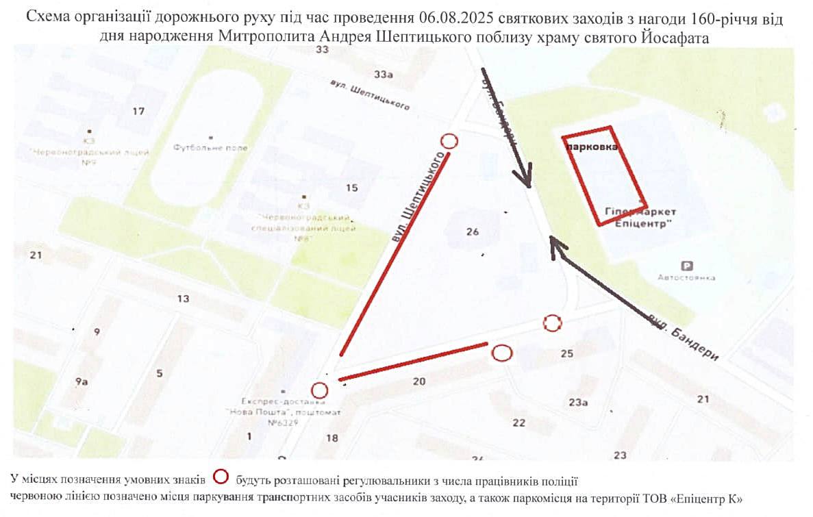 6 серпня, в день приїзду Глави УГКЦ Святослава Шевчука очікується велика кількість вірян з усієї громади, які візьмуть участь у спільній молитві. У зв’язку з цим тимчасово буде обмежено рух транспорту на прилеглих до церкви Йосафата вулицях.