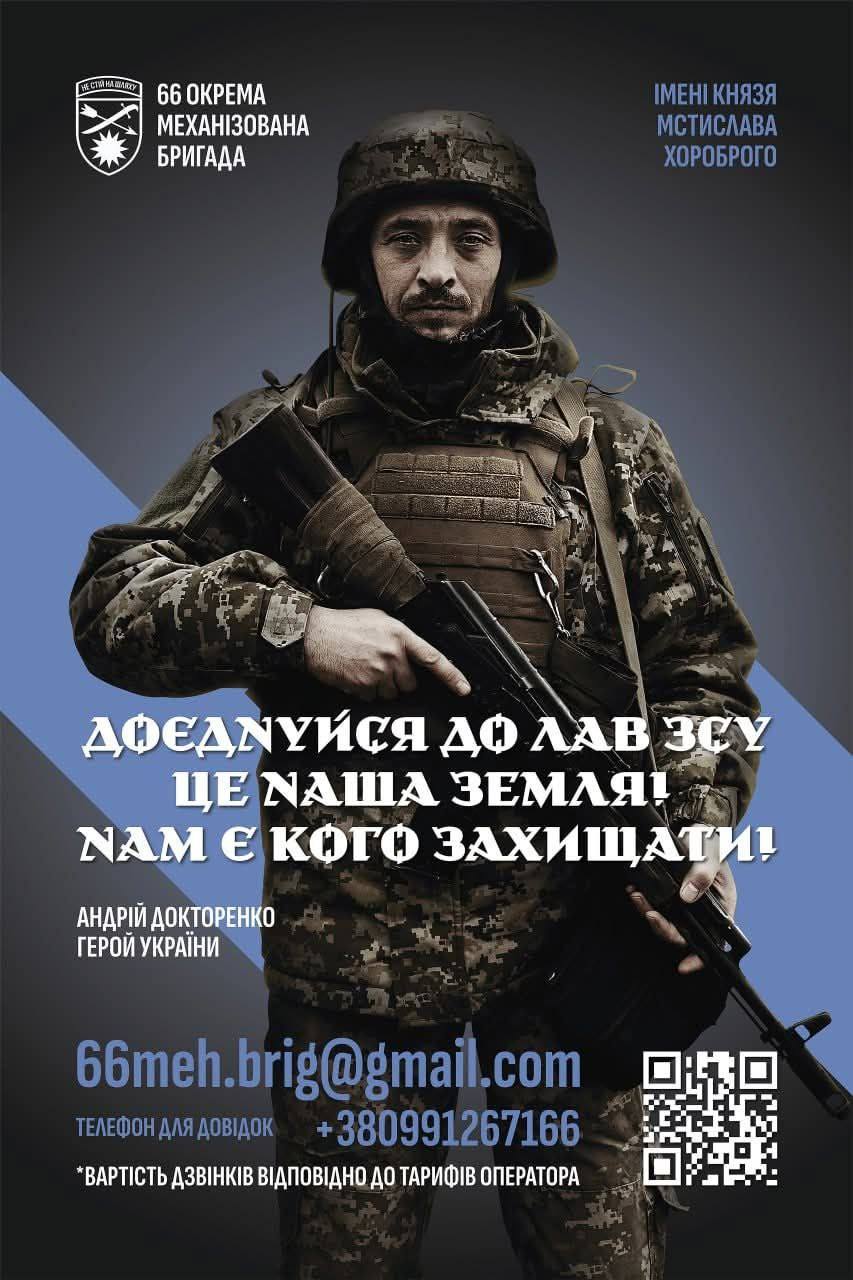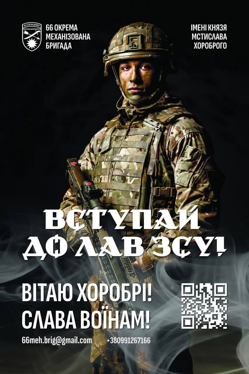 66-а окрема механізована бригада запрошує доєднатися до наших лав! Ми – велика та дружня сім’я, об’єднана спільною метою – захистом нашої рідної землі від будь-яких посягань. Якщо ви шукаєте можливість стати частиною чогось більшого, долучитися до захисту України та знайти справжніх побратимів, тоді вам до нас!