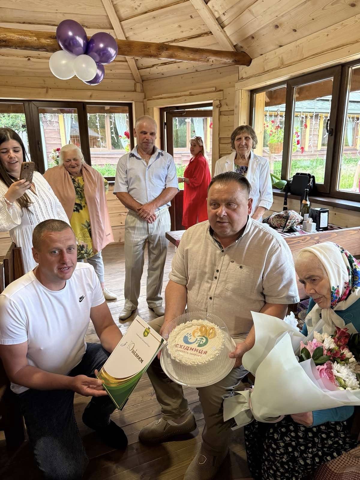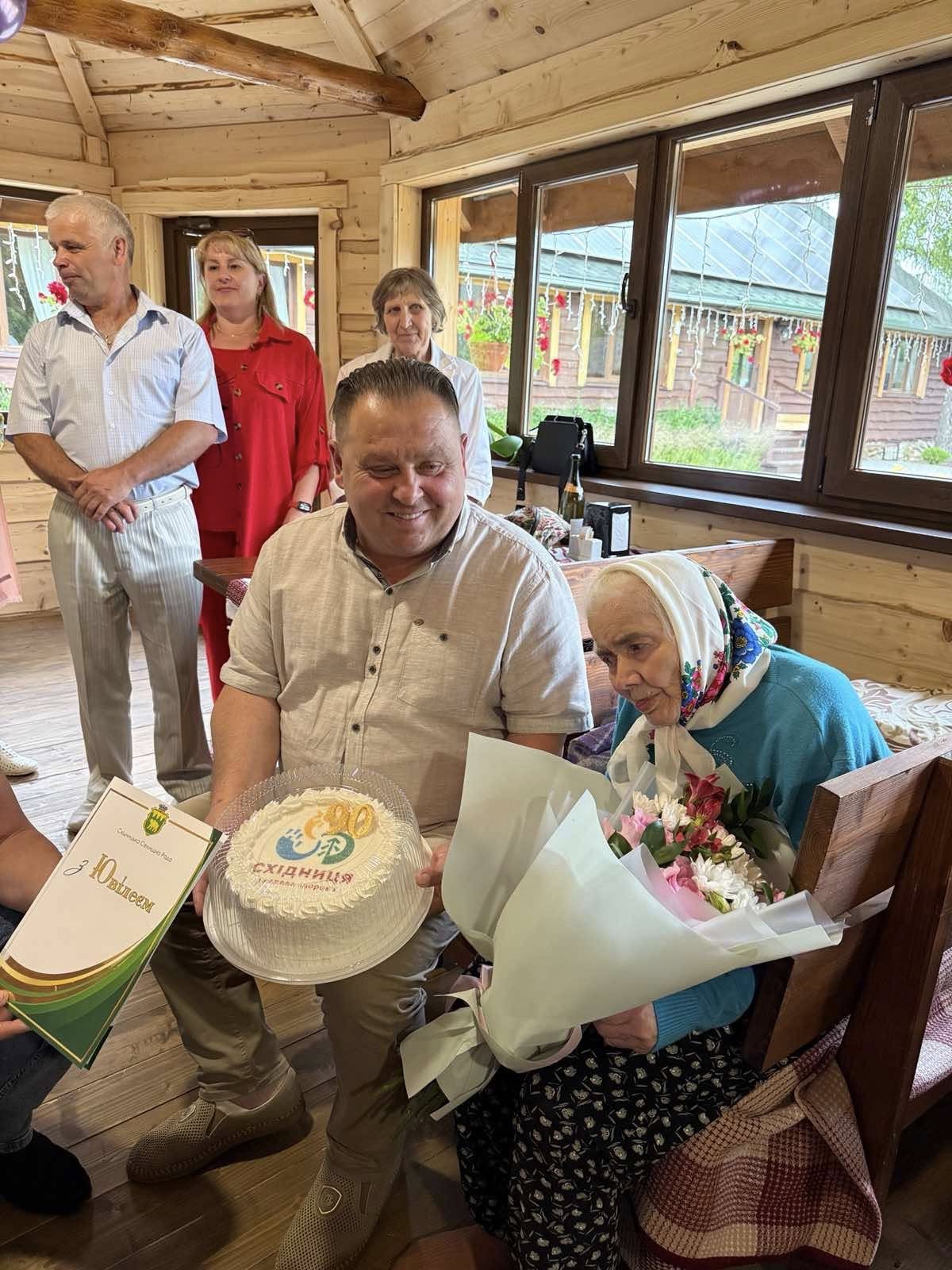 🎂💐З нагоди цього визначного свята привітати ювілярку приїхали селищний голова Іван Піляк, староста Рибницького старостинського округу Василь Зварич та директорка КУ «Центр надання соціальних послуг Східницької селищної ради» Ірина Ігнацевич. Ювілярці вручили подарунки, слова вдячності та найщиріші вітання.