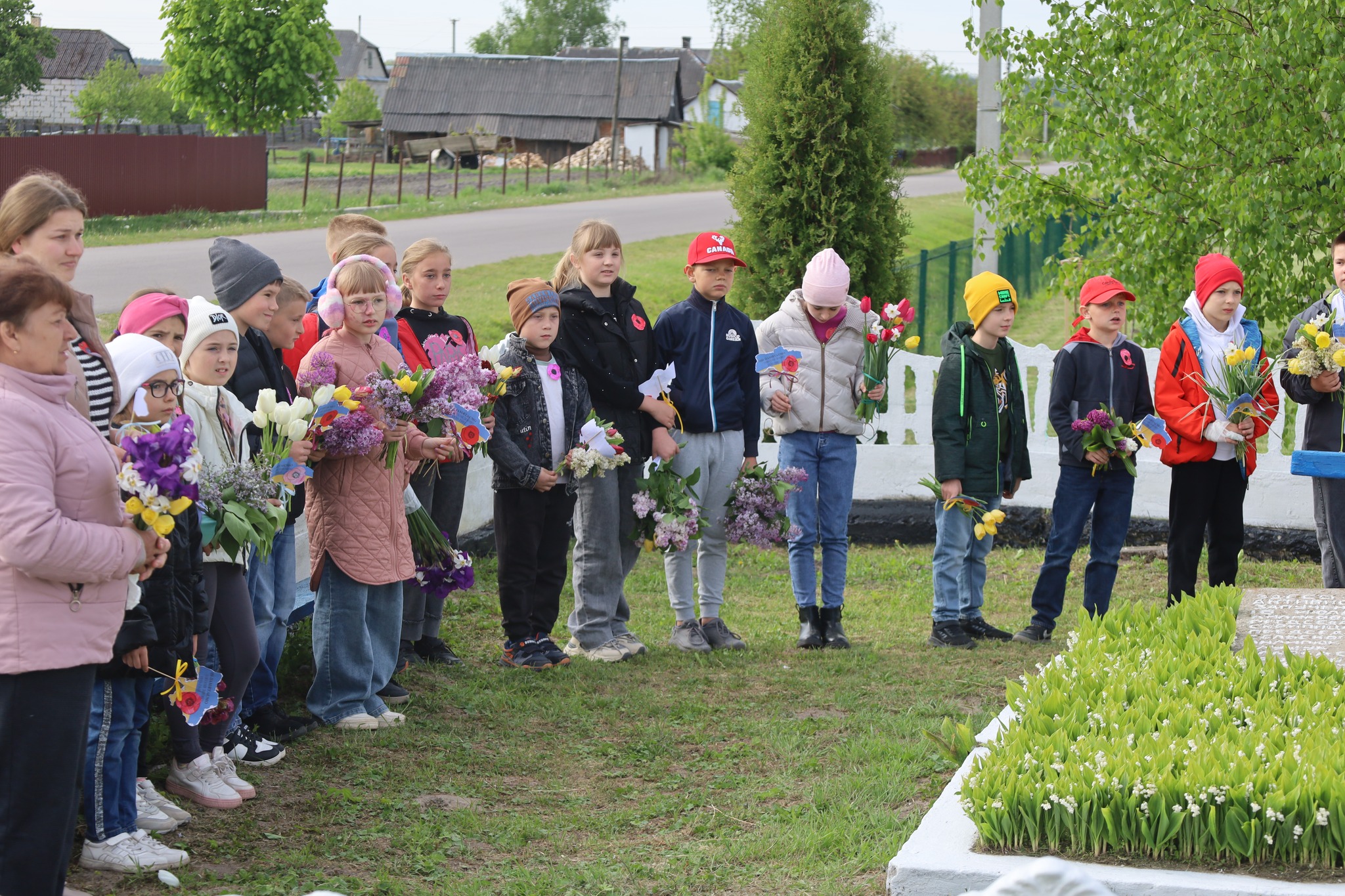 Біля пам’ятного знаку воїнам, загиблим у роки Другої світової війни, зібралися учні та вчителі Опорного закладу “Вишнівський ліцей”, а також представники Вишнівської сільської ради. Атмосфера була наповнена скорботою та повагою. Після короткої, але змістовної промови сільського голови Віктора Сущика, в якій було підкреслено нерозривний зв’язок між подвигом минулих поколінь та сучасною боротьбою українського народу за свободу, учасники церемонії поклали квіти до меморіалу.