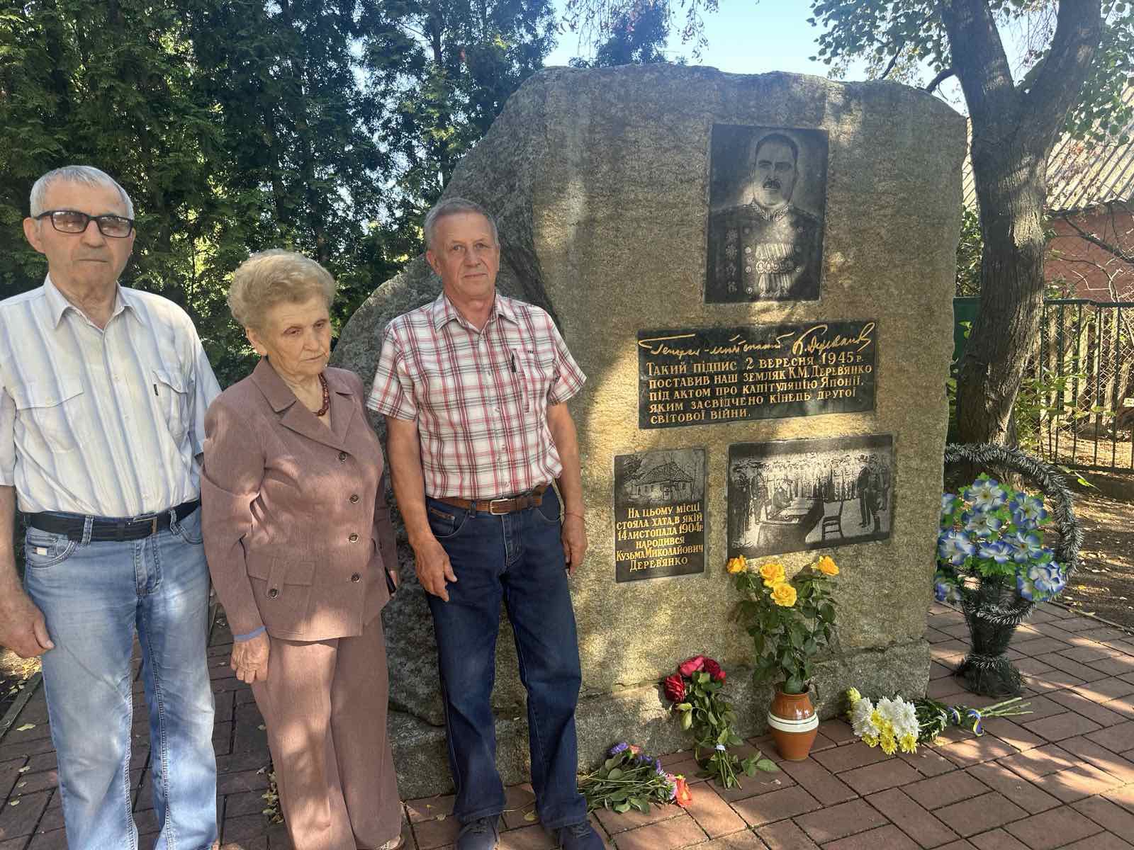 🔳 80-та річниця завершення Другої світової війни: Вшанування пам’яті героя Тальнівщини. ◼️ 2 вересня 1945 року – знакова дата, коли був підписаний Акт про беззастережну капітуляцію Японії, що поклало край найкривавішому конфлікту в історії людства. ▪️ Напередодні цієї важливої річниці, представники ветеранської організації Тальнівської громади здійснили символічний візит до музею в селі Косенівка Уманського району. Голова організації Віктор Крошка, разом з Миколою Мельником та Ларисою Миколаївною Трохименко, племінницею видатного українського військового діяча Кузьми Дерев’янка, вшанували пам’ять загиблих. Кузьма Дерев’янко, чий внесок у перемогу над нацизмом був неоціненним, 2 вересня 1945 року поставив свій підпис під історичним документом про капітуляцію Японії. Біля пам’ятника, присвяченого його подвигу, були покладені квіти, як символ глибокої поваги та пам’яті про всіх, хто боровся і загинув у Другій світовій війні. 🔲🔲Ця подія слугує потужним нагадуванням про величезну ціну, яку заплатив світ за перемогу, і про незламний дух та стійкість українського народу, який відіграв ключову роль у здобутті миру. Наша пам’ять про них – це наш обов’язок перед майбутніми поколіннями. Вічна пам’ять загиблим героям!