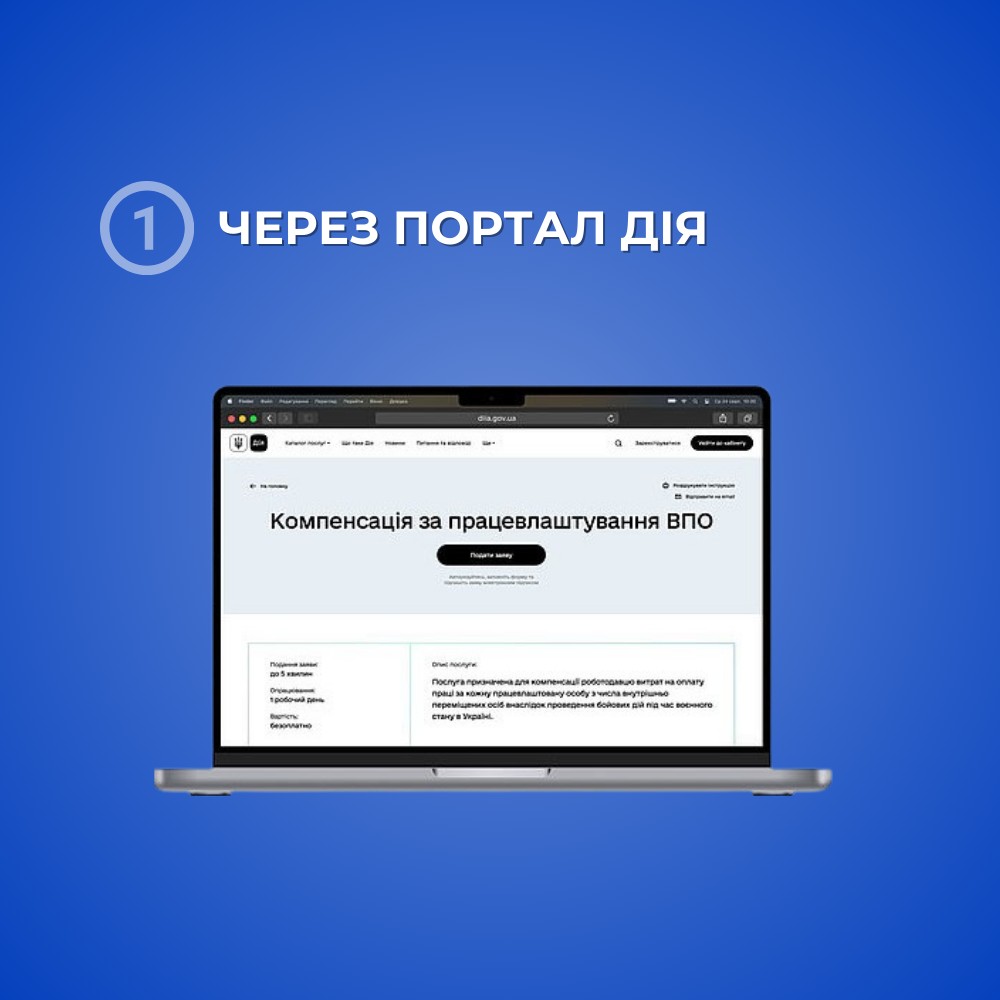 Подати заявку на отримання компенсації за працевлаштування ВПО можна кількома способами:
