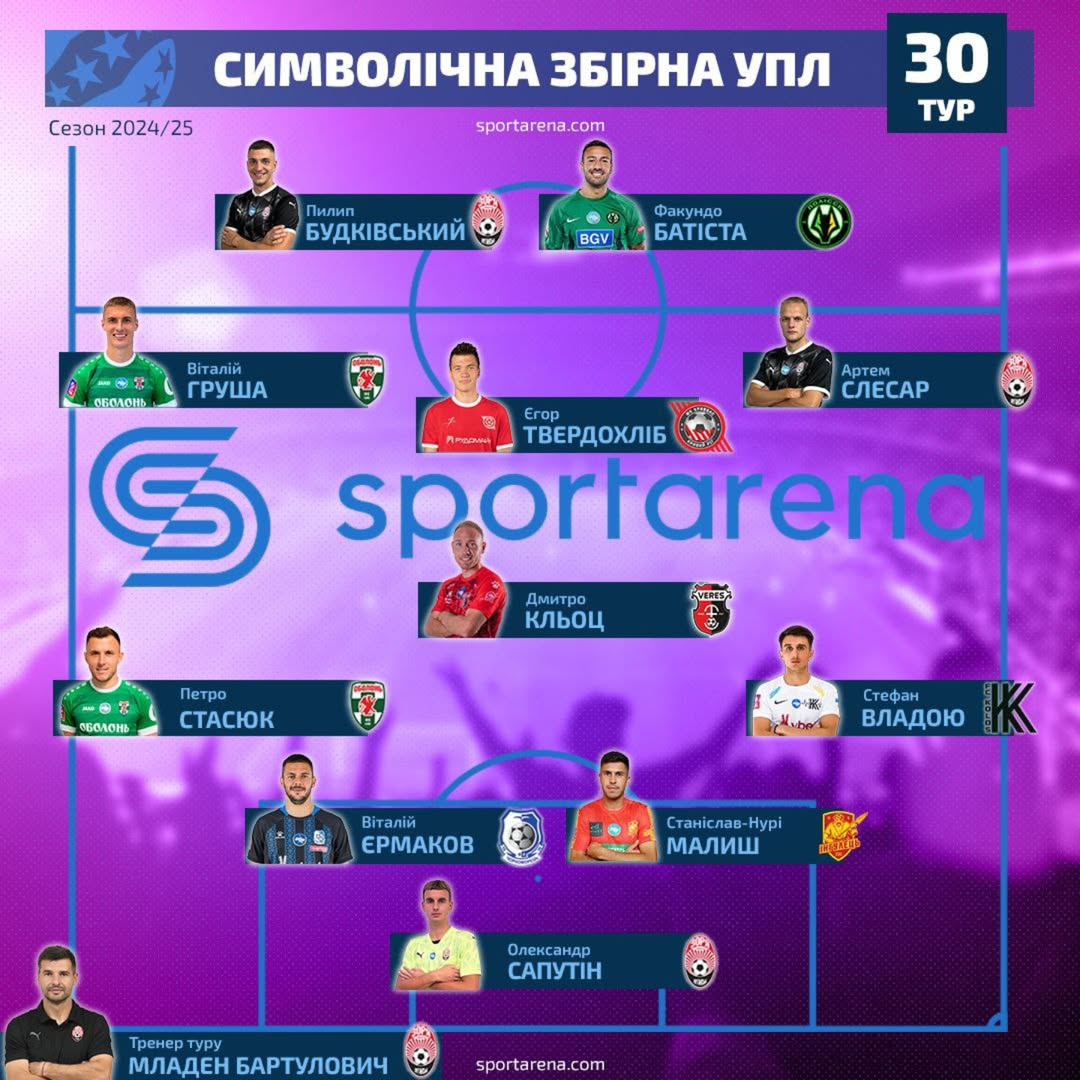 Символічна збірна 30-го туру УПЛ за версією SportArena
