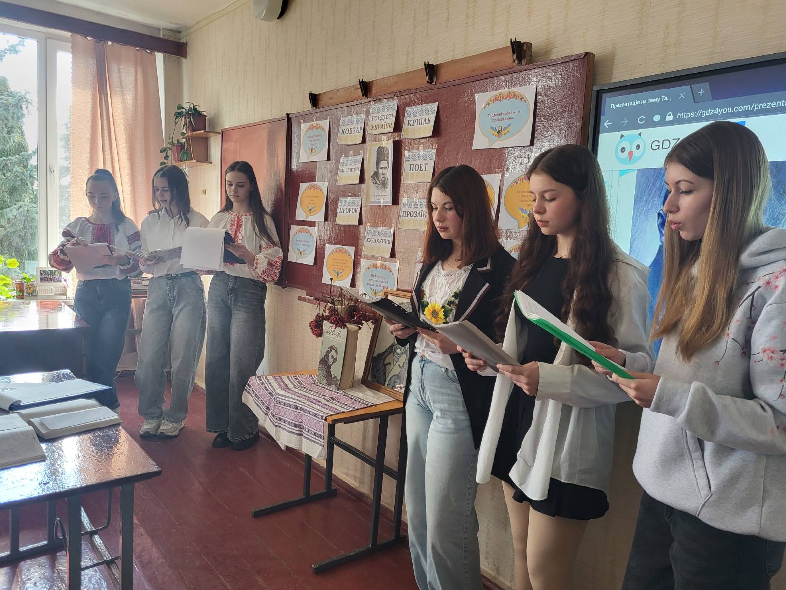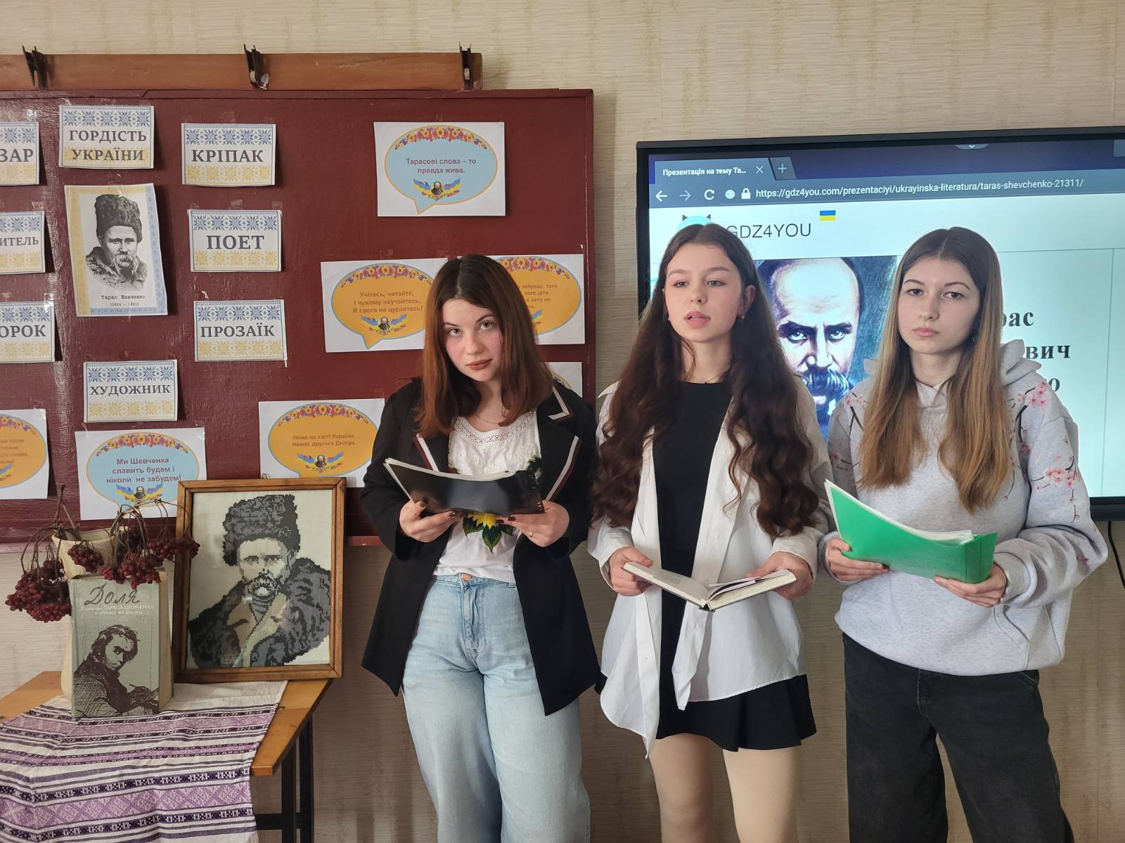 З нагоди 212-ї річниці від Дня народження великого Кобзаря, у закладах загальної середньої та дошкільної освіти громади було проведено низку тематичних виховних заходів. Класні керівники, педагоги-організатори, вчителі української мови та літератури, бібліотекарі та вихователі доклали максимум зусиль, щоб донести до молодого покоління велич постаті Тараса Шевченка та значення його спадщини для сучасної України. Ці заходи допомогли учням краще зрозуміти глибину його поезії, осмислити історичний контекст його життя та творчості, а також відчути, як його ідеї продовжують жити в сучасному суспільстві. Вони слухали вірші, переглядали презентації про життя і творчість Шевченка, брали участь у вікторинах та обговореннях. Особливу увагу приділяли тому, як ідеї Шевченка про свободу та гідність актуальні для України сьогодні, особливо в умовах боротьби за її незалежність. Діти ділилися своїми враженнями, малювали ілюстрації до творів Кобзаря, створювали власні вірші, натхненні його прикладом.