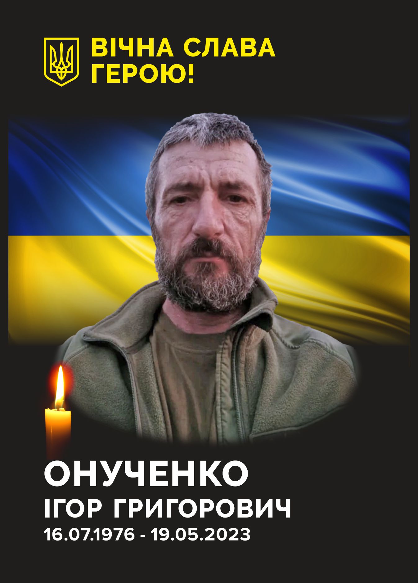 Слава Україні! Героям слава! Вічна пам’ять героям, що віддали життя за волю України! **Ігор Онученко** назавжди залишиться в нашій пам’яті. Його жертовність – приклад для майбутніх поколінь українців. Нехай пам’ять про нього живе вічно. Спочивай з миром, Герою!
