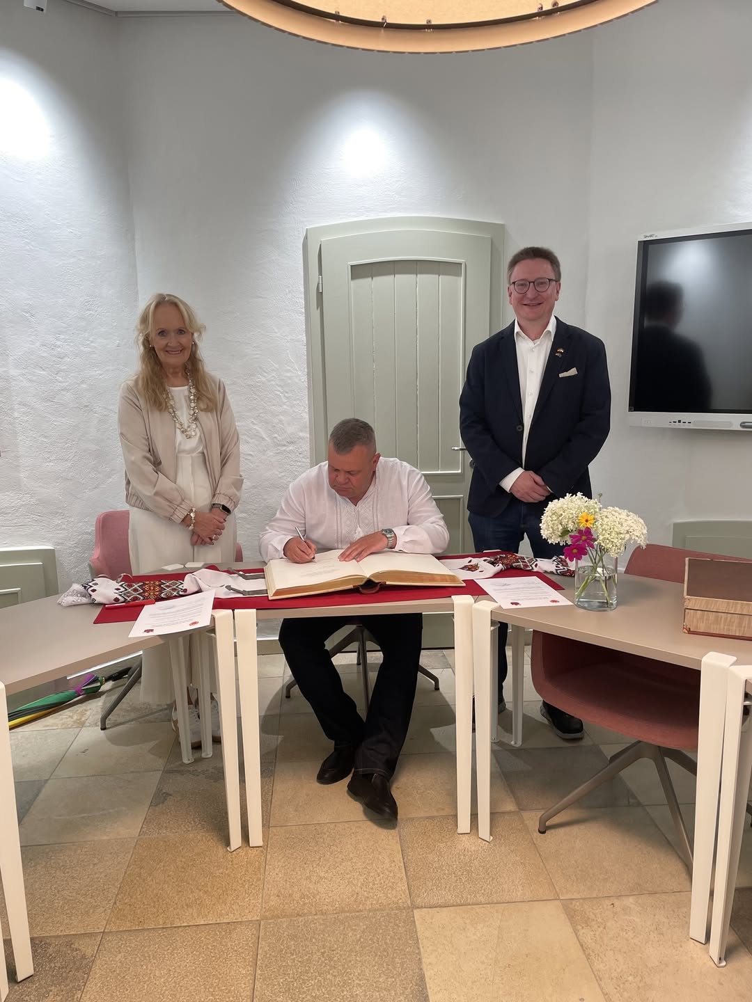 Під час урочистої церемонії мер Подільська Олег Абланський зробив запис до Золотої книги міста Боркен. Цей акт є не просто формальністю, а потужним символом непохитного зобов’язання та взаємної поваги між двома муніципалітетами. Запис у Золотій книзі свідчить про довгострокові наміри щодо розвитку партнерства Подільськ Боркен, яке виходить за рамки звичайних дипломатичних зв’язків. Він втілює надію на спільне майбутнє та підтримку в часи випробувань.