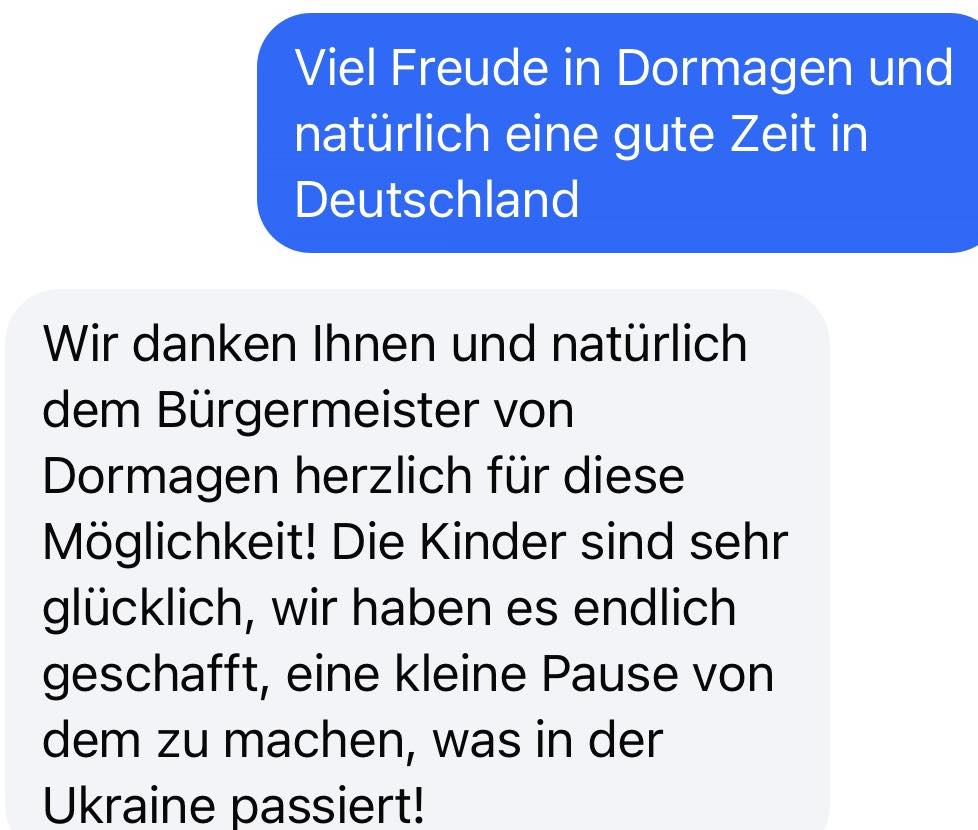 Допомога, що дійсно допомагає. Щира подяка місту Дормаген та колезі-мерові Еріку Ліренфельду з мережі мерів, які погодилися прийняти кількох дітей з центру України для короткочасного відпочинку від війни, як знак людяності в ці важкі дні.