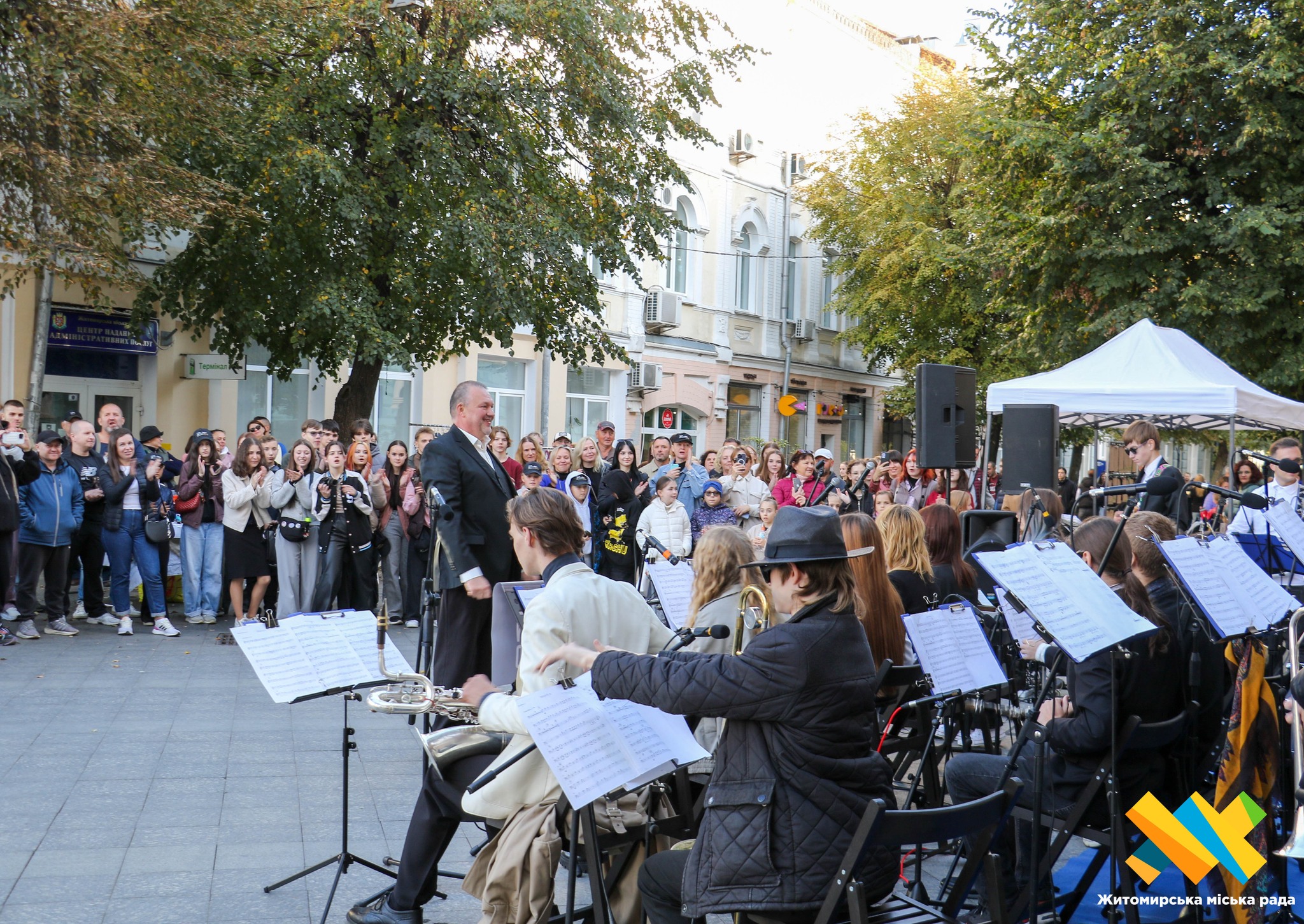 У серці Житомира, на пішохідній вулиці Михайлівській, розлилися звуки джазу, принесені дитячим естрадним оркестром «Jazz Teen Band» із Миколаєва. 🎷🎼🎻 Цей виступ — не просто концерт, а справжнє свідчення єднання, де в кожному ритмі відчувається тепло півдня України та незламний дух її дітей.