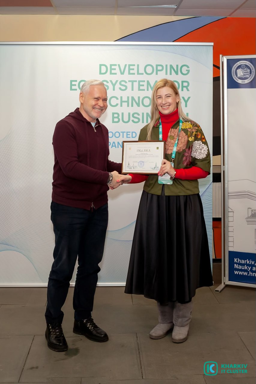 «За ці десять років Kharkiv IT Cluster став невід’ємною частиною розвитку нашого міста. Це не лише про бізнес, а й про відповідальність і майбутнє. Ваша робота – приклад того, як інновації можуть змінювати життя містян уже сьогодні. Дякую за партнерство, за підтримку громади й за те, що будуєте сучасний і сильний Харків разом з нами!» – зазначив міський голова Ігор Терехов.