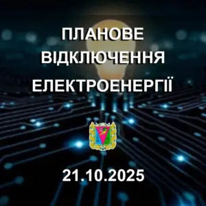 УВАГА! ПЛАНОВЕ ВІДКЛЮЧЕННЯ ЕЛЕКТРОЕНЕРГІЇ 21.10.2025