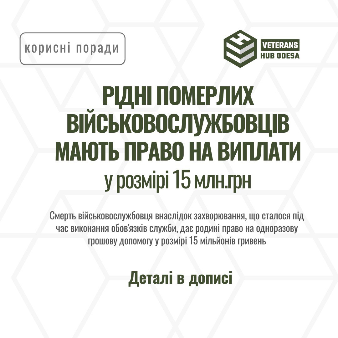 Veterans HUB ODESA: Рідні померлих військовослужбовців мають право на виплати у…